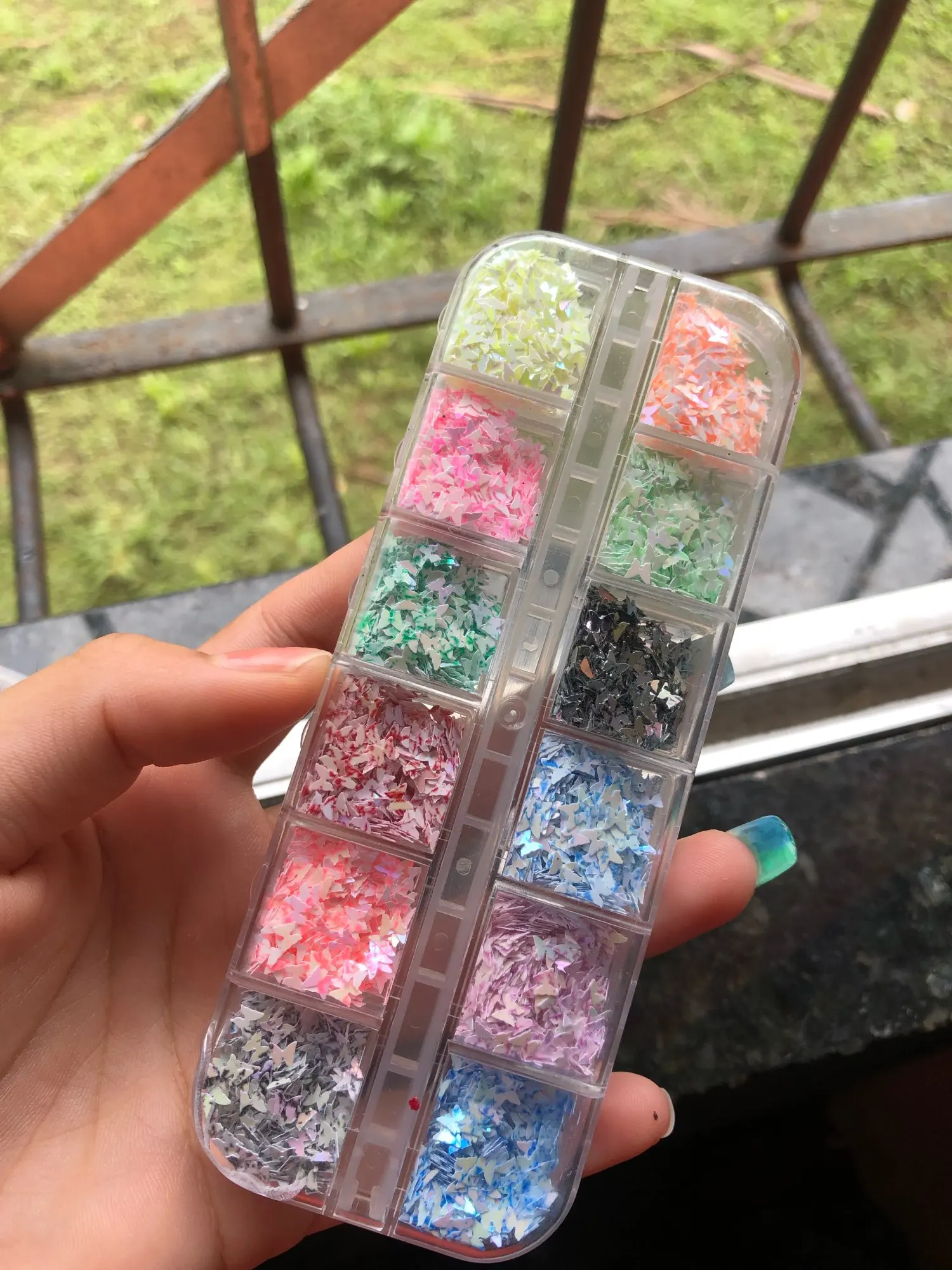 Блёстки хорошо упакованы, цвета не перемешиваются так как для каждого цвета своя «коробочка». Приятный бонус - наклейки в подарок
