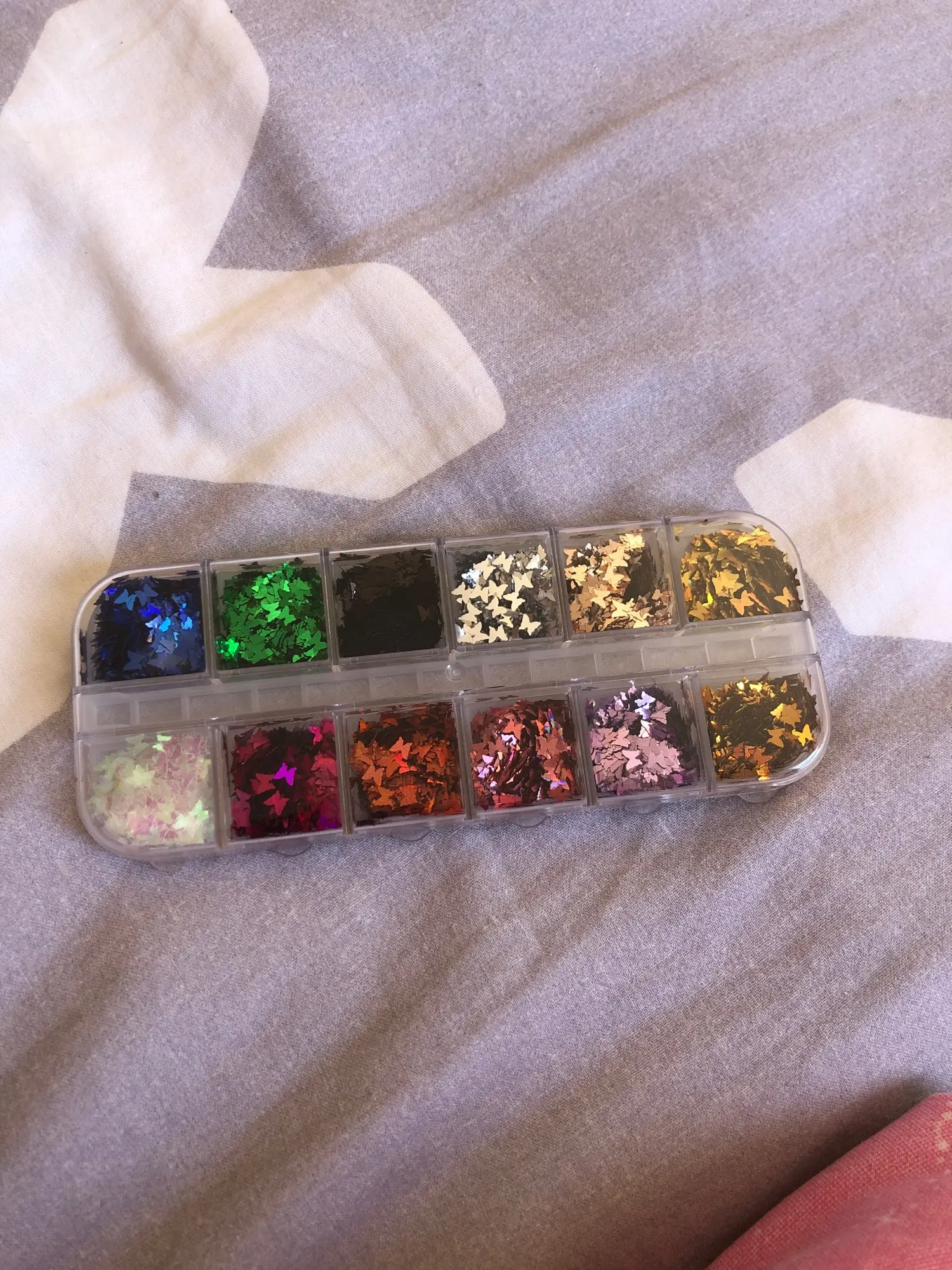 Метелики класні. Тільки маленька частинка галографічні(з блиском), а решта ні. Сама коробочка маленька, але метеликів дуже багато. Рекомендую❤️ З продавцем не спілкувалася