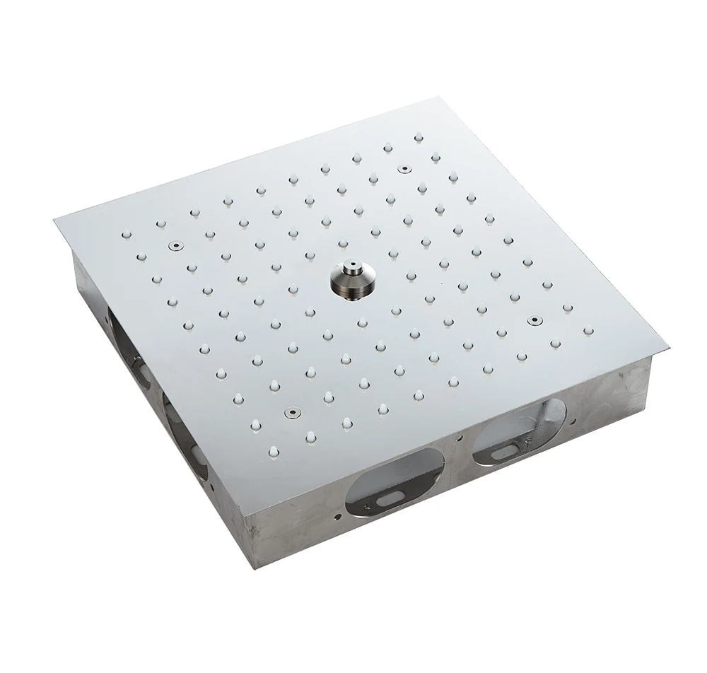 Он изготовлен из SUS304 и закончен зеркалом, размер 300x300 мм, есть 2 функции включает в себя: дождь и спрей туман, с роскошным светодиодный светодиодный светильник подключен к источнику питания для производства стабильного электричества, поэтому светодиодный светильник имеет длительный срок службы, насадка светится, Вода течет из светящейся насадки, она очень красивая и очень романтичная, кристаллический кварцевый ряд-это наш недавно разработанный продукт, различные цвета с украшением в виде кристаллов кварца сопровождаются меняющийся светодиодный свет для того, чтобы сделать ваш душ 5-звездочный спа удовольствия. Испытано с 3 бар давлением воды, скорость потока: дождь: 15л/м; Спрей туман: 9л/м; Он был встроен потолок, когда мы устанавливаем его, размер отверстия потолка 285*285 мм. Напряжение питания, используемое для душевой головки, составляет 90 ~ 260VAC.
