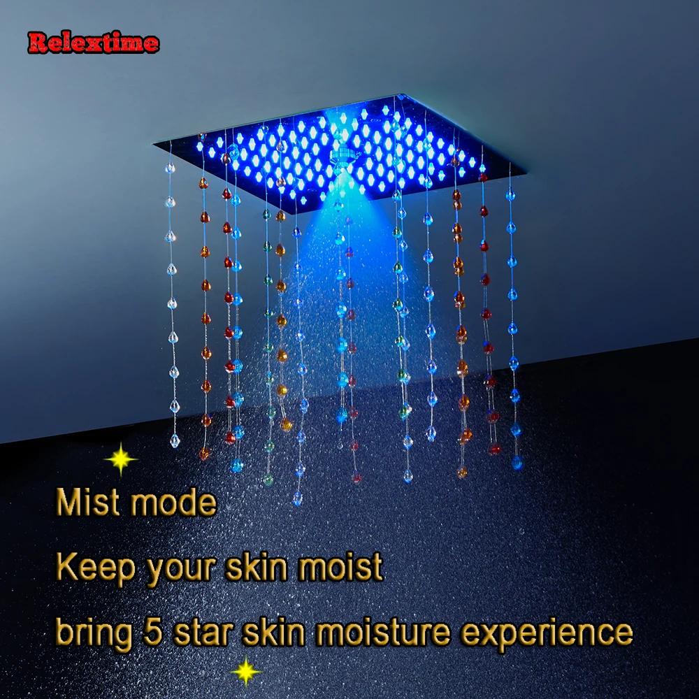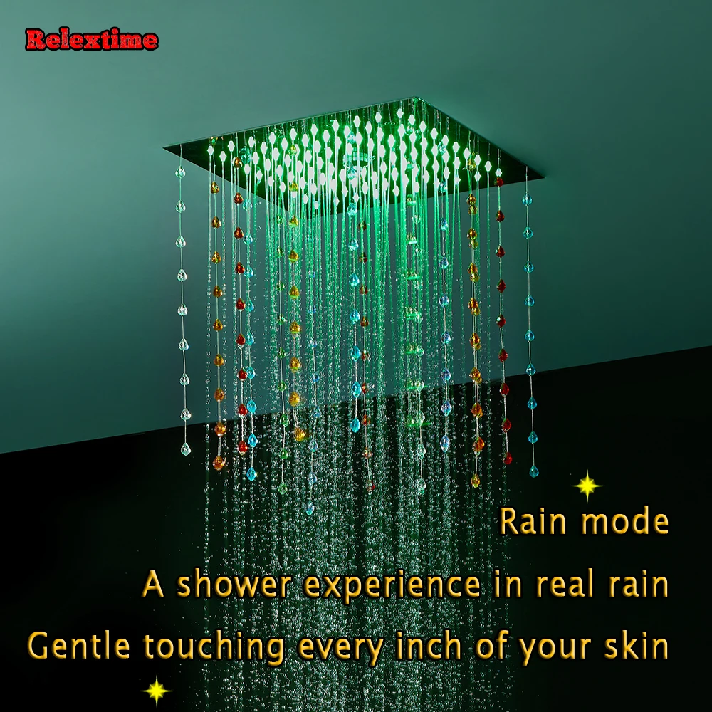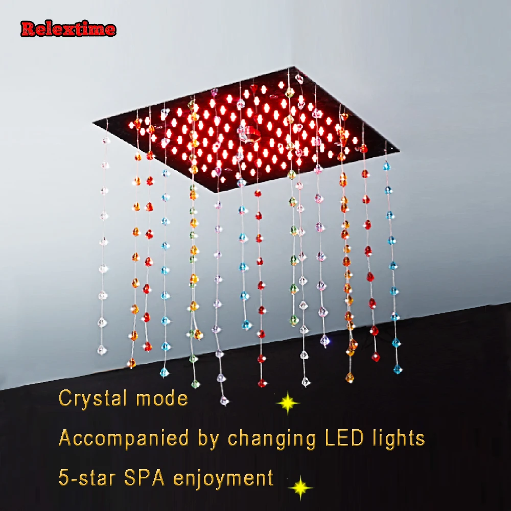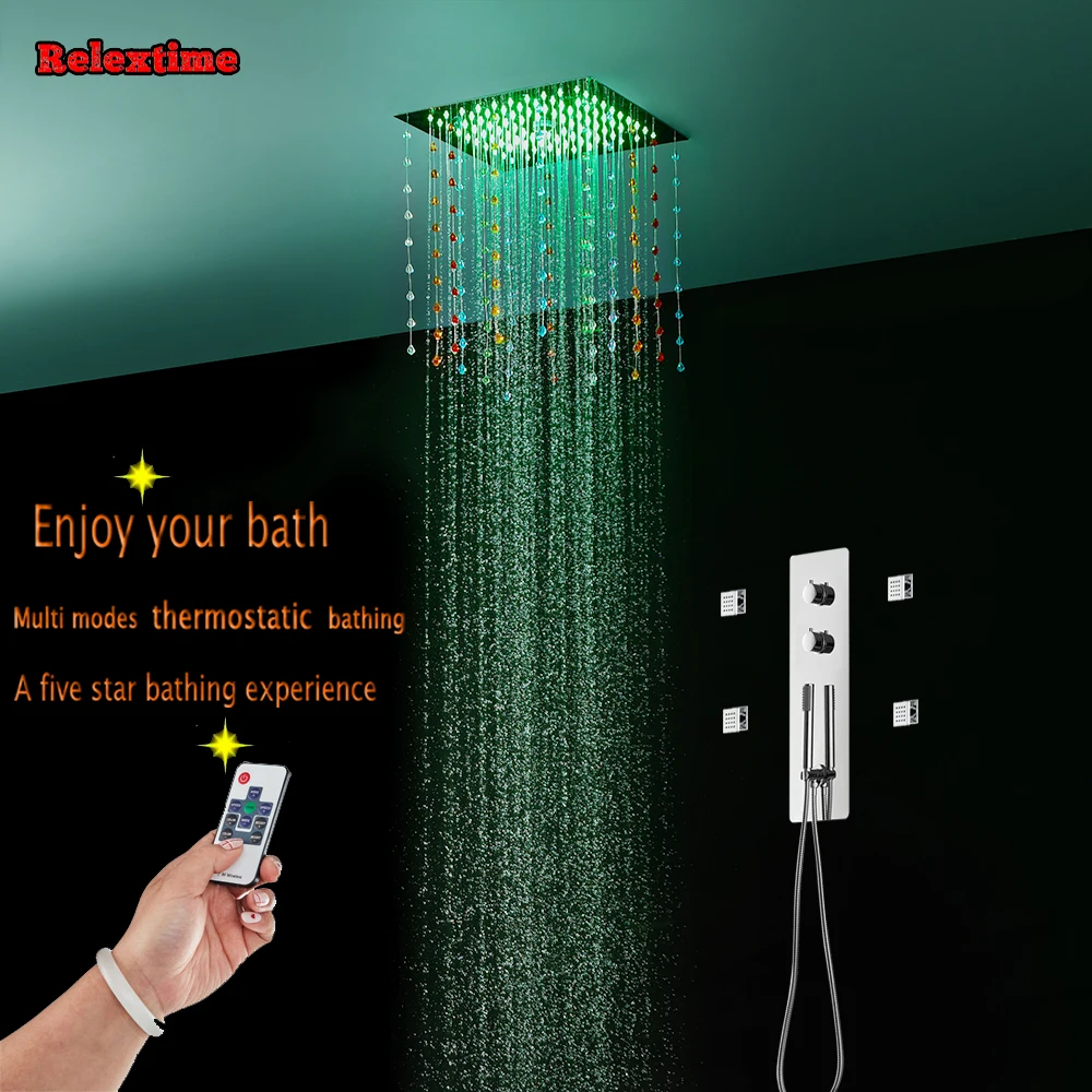 Новый стиль, светодиодный набор для душа для ванной комнаты, 4 выхода, термостатический смеситель с насадкой, светящийся светодиодный потолочный Душ, дождевая насадка, спрей-туман с массажными струями с кристаллами, кварцевое украшение LJ3201.