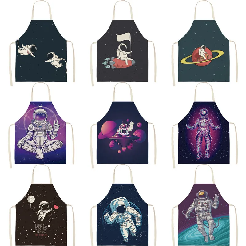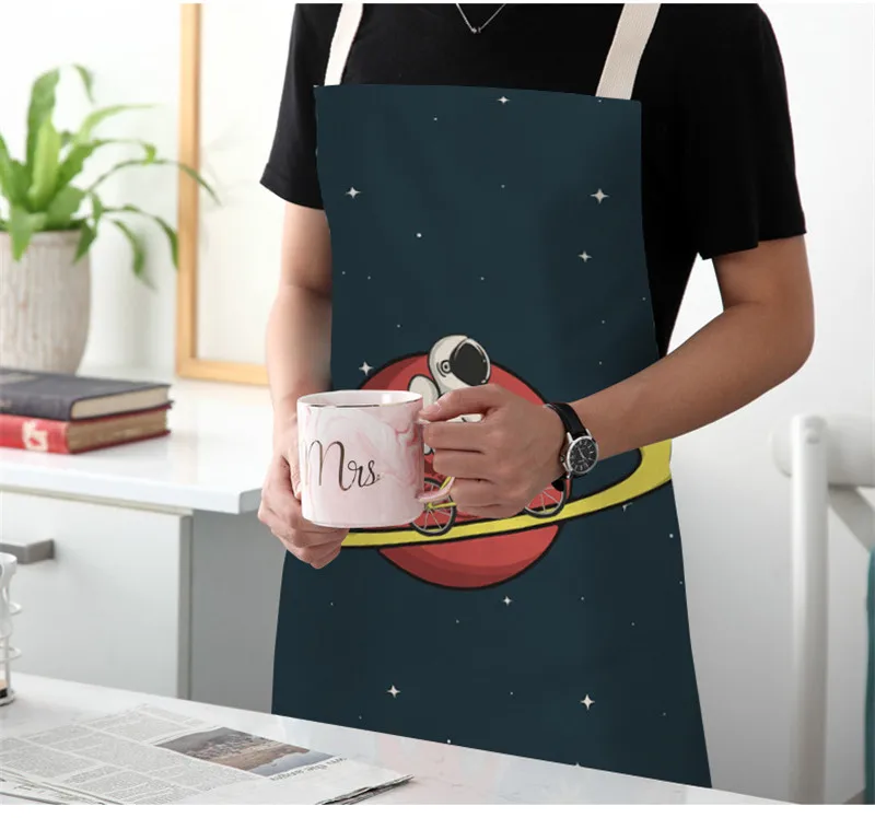 Нагрудник из хлопка и льна с принтом космоса и легкой очистки для девочек и мужчин, Женский фартук, мужские фартуки