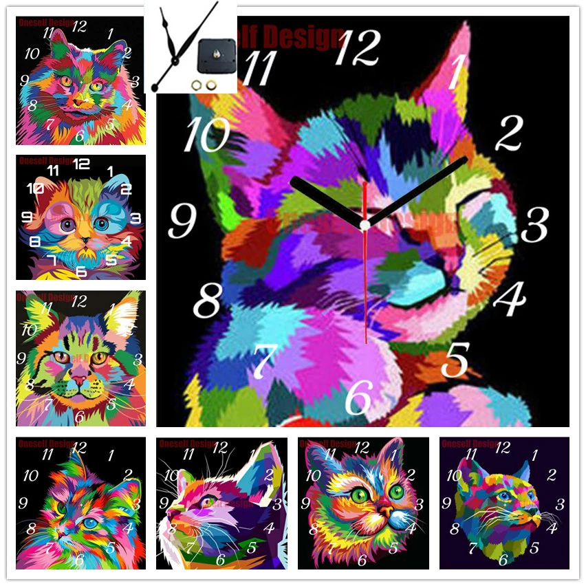 Популярная 5d алмазная картина с часами цветная кошка 5d алмазная в...