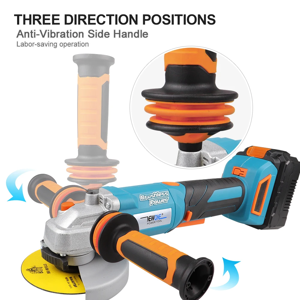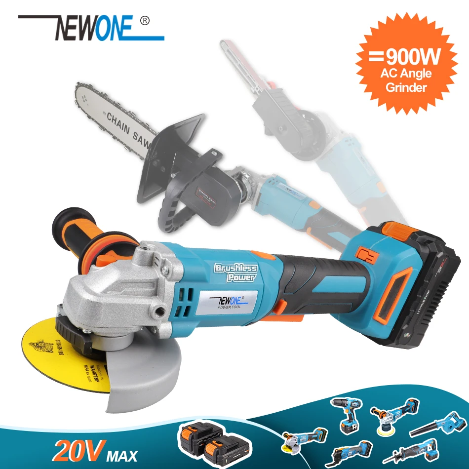 Угловая шлифовальная машина NEWONE, бесщеточный режущий инструмент M10M14 с литий-ионной батареей 4,0 Ач, 3-позиционная вспомогательная ручка, быстрое зарядное устройство, 20 в