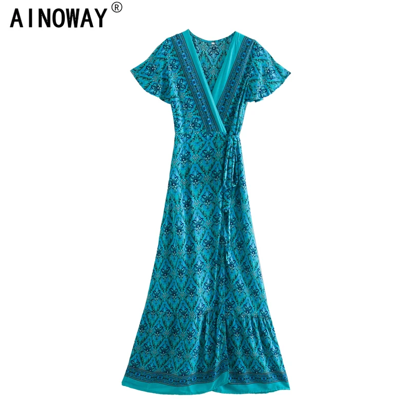 Женское винтажное платье с запахом, длинное пляжное платье макси в ...