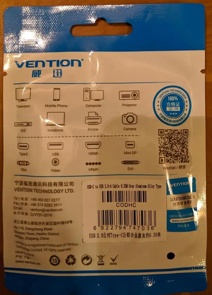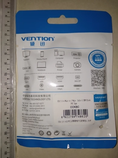 Продукция Vention очень качественная. Все разъемы защищены колпачками (см. фото). Кабель действительно USB 3.0 и соответствует характеристикам в описании. Передача данных и быстрая зарядка работают. Оплётка очень прочная, хорошо сгибается. На упаковке есть стираемая область с кодом, который можно проверить на сайте производителя. Со скидками из группы вконтакте GXSMART за кабель 25 см заплатил всего 20 руб. (26 центов) - отличная цена. Есть смысл покупать со скидками.