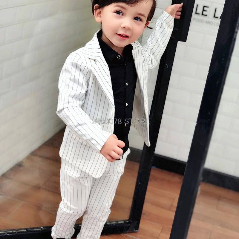 Комплект детской одежды из куртки и брюк, комплект одежды из 2 предметов, официальный свадебный смокинг для мальчиков с цветами, Детский костюм для проведения танвечерние представлений