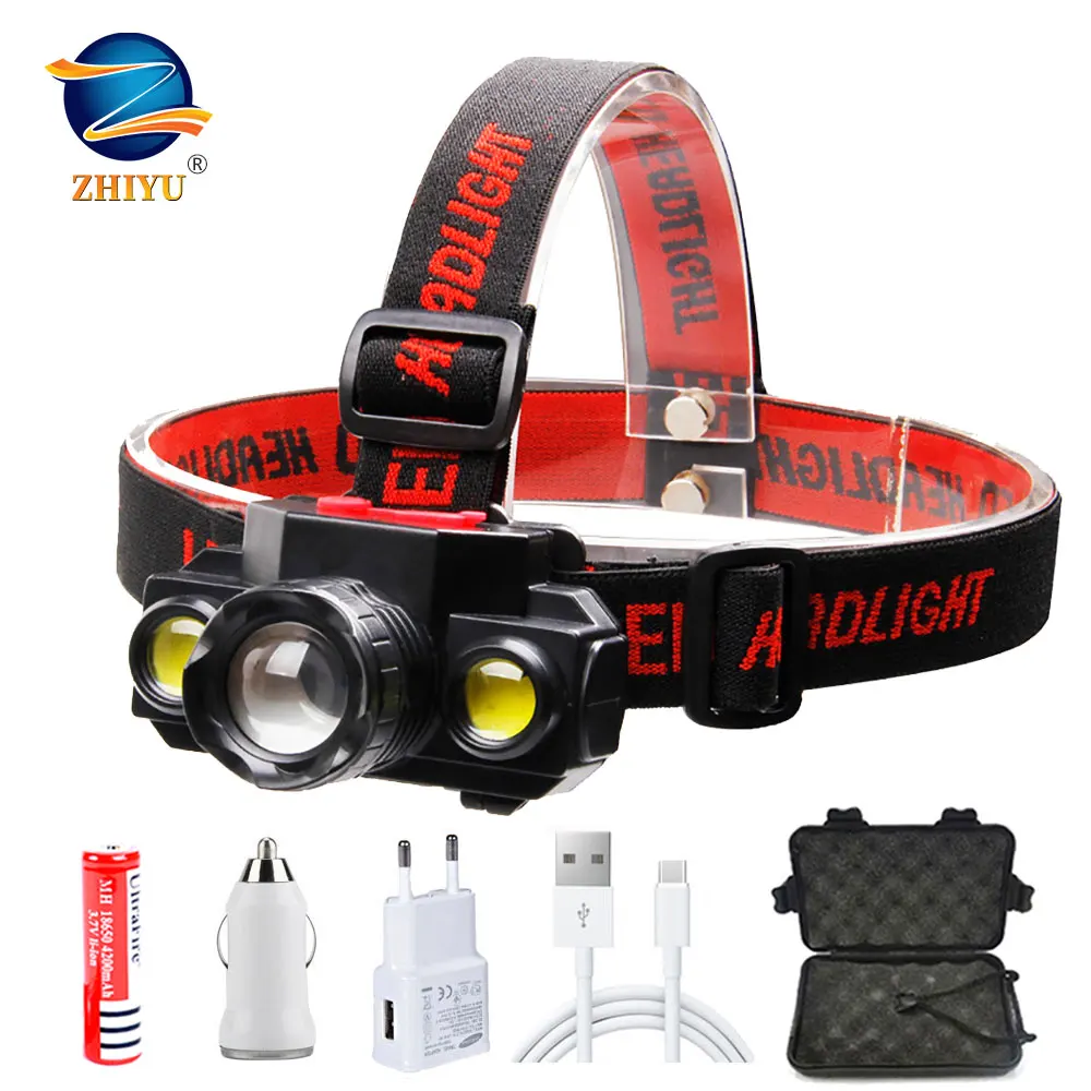 Налобный фонарь ZHIYU, портативный, T6, COB, 4 режима, 18650, перезаряжаемый через USB, ручной фонарик, масштабируемый, мини-фонарик для рыбалки