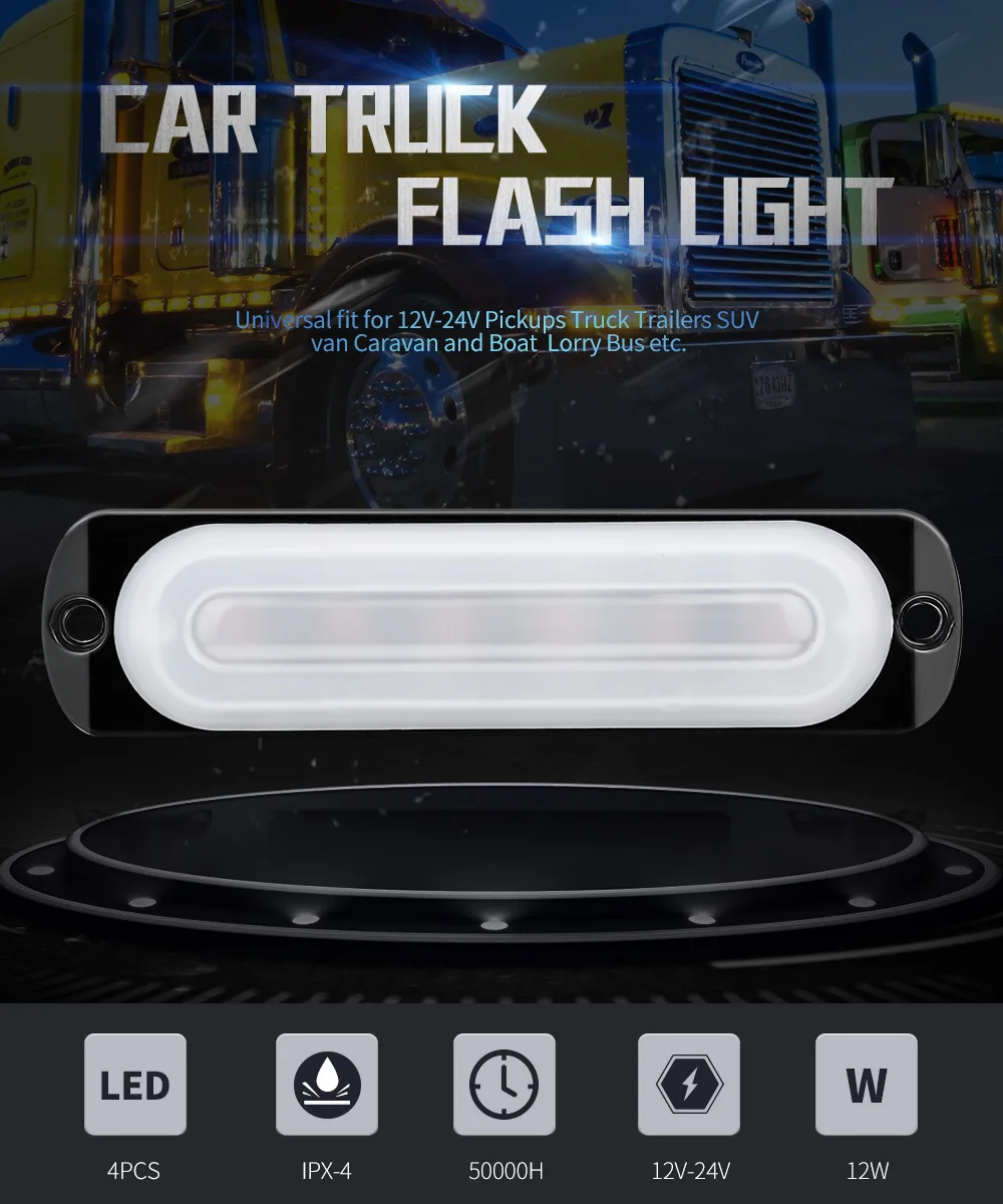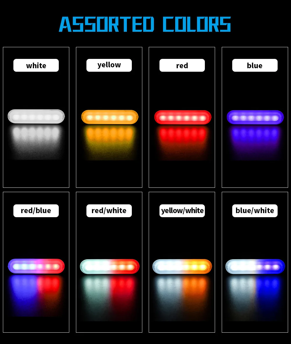 Характеристики: -Количество чипов: 6 светодиодов -Цвет: белый/желтый/красный/синий/белый-красный/белый-синий/белый-желтый/красный-синий Напряжение: 12V-24V Мощность: 18 Вт Уровень водонепроницаемости: IPX-4 Срок службы: 50000 часов Материал: алюминий Размеры: 11*2,8 см