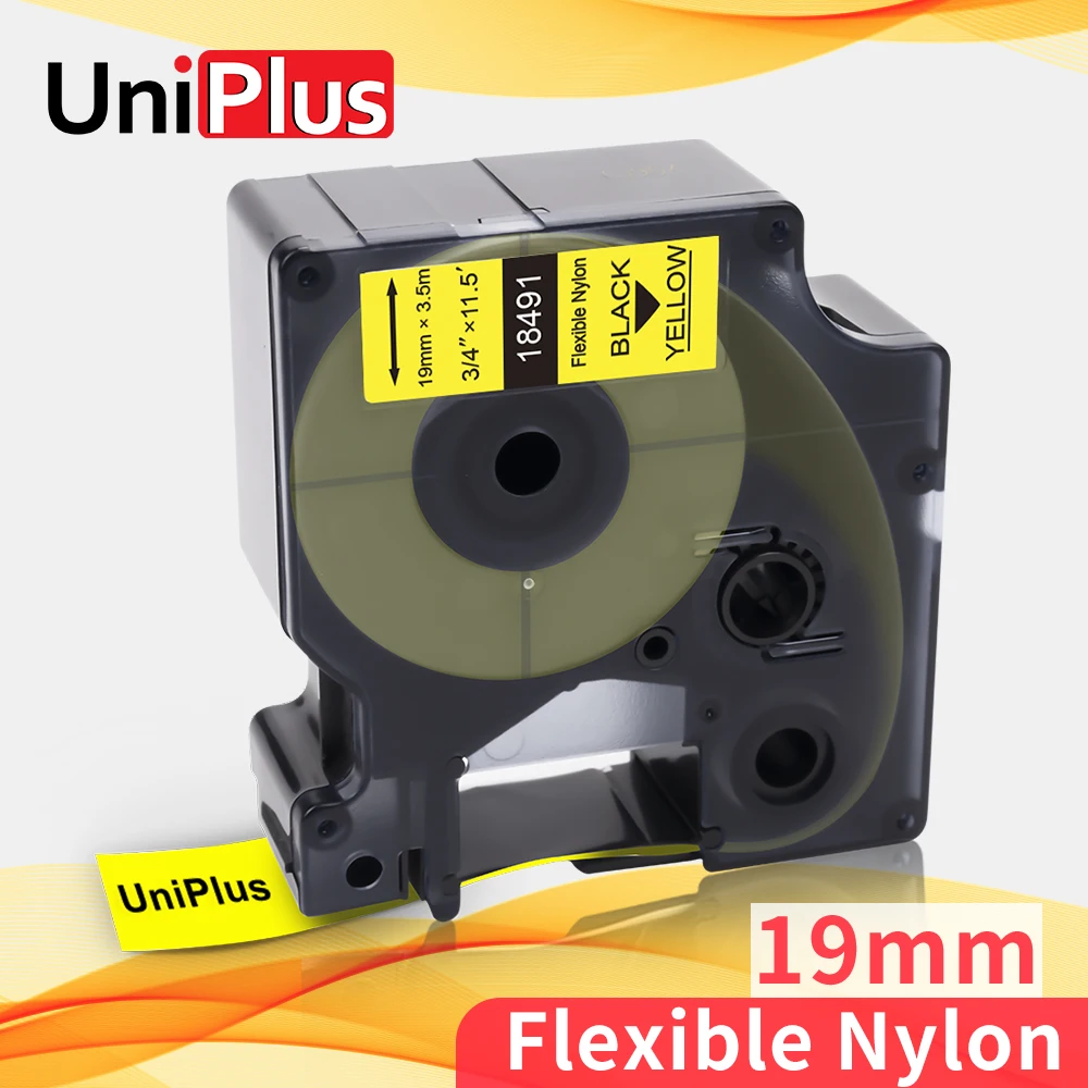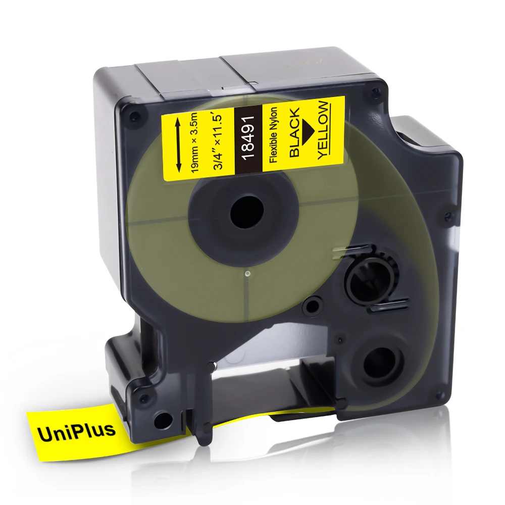 UniPlus 18491 черный на желтой этикетке ленты гибкий нейлон совместимый с Dymo Rhino IND принтер ленты 19 мм для Rhino 4200 5000 5200