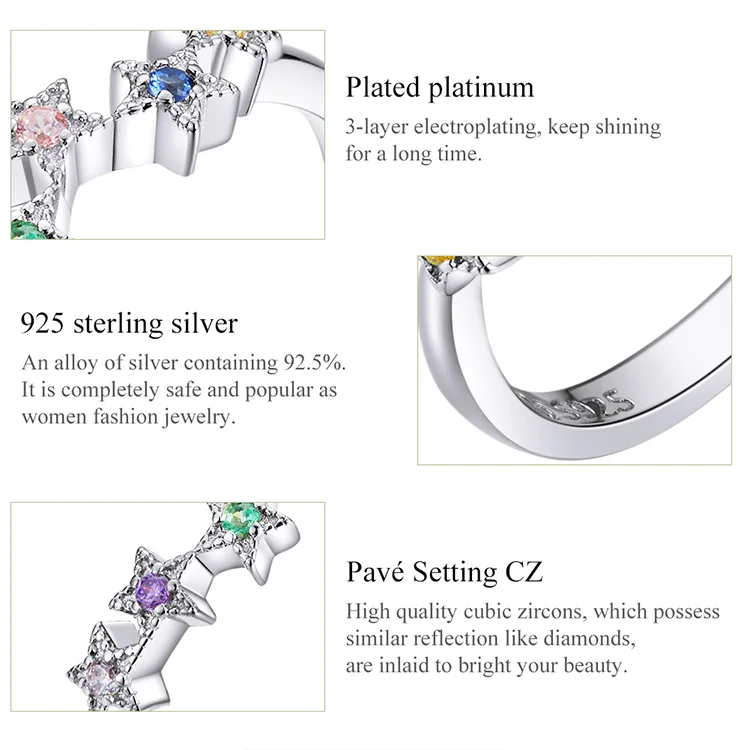 Bamoer Аутентичные 925 пробы Серебряные Красочные Звездные Кольца н...