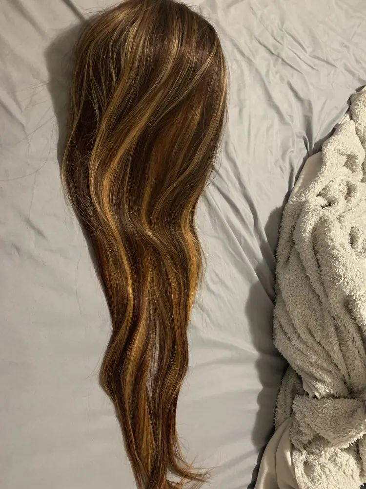 Волосы действительно красивы и выглядят красиво в реальной жизни, они немного линяют и на фото выглядят немного более сухими. Я рекомендую использовать молоко для волос и оливковое масло, чтобы добавить блеск. Обслуживание клиентов было отличным, Анна была очень рада. В целом я бы порекомендовал этот волос и компанию.