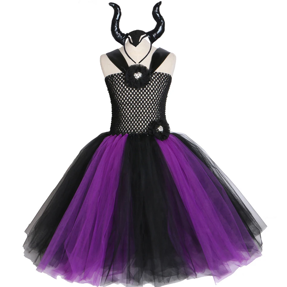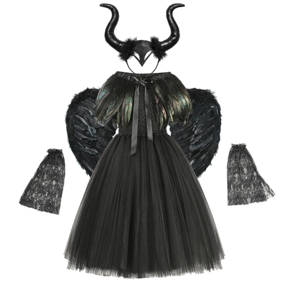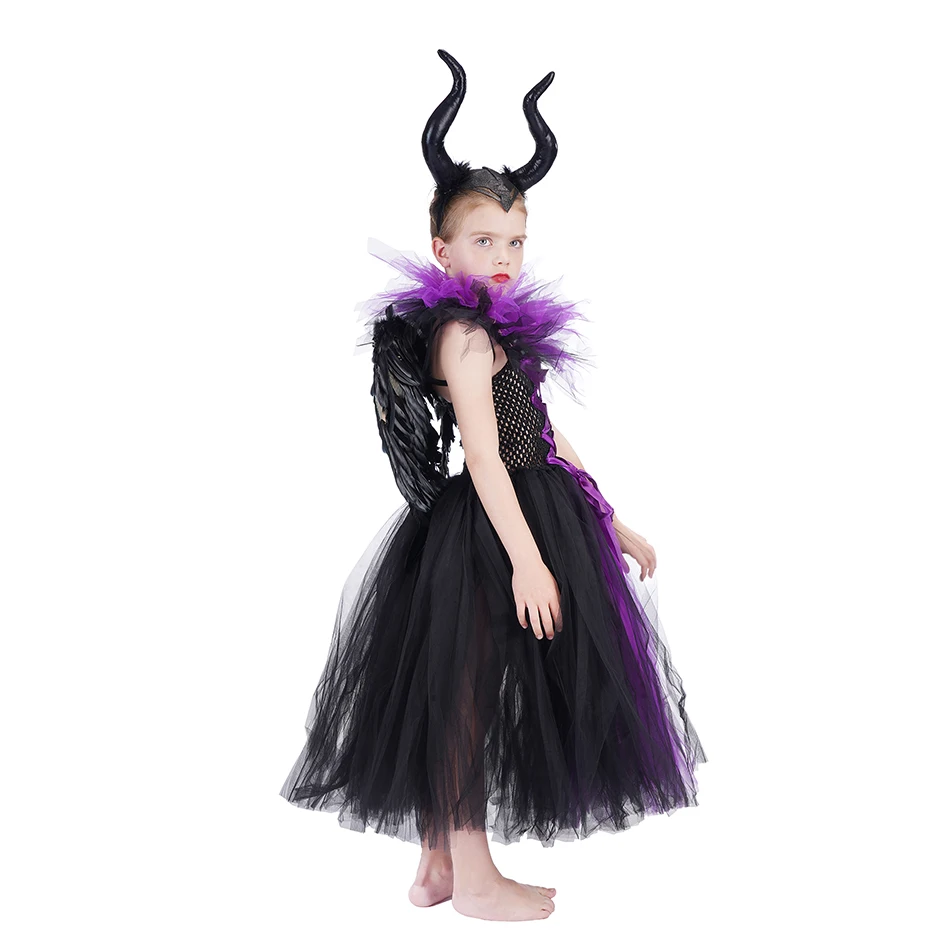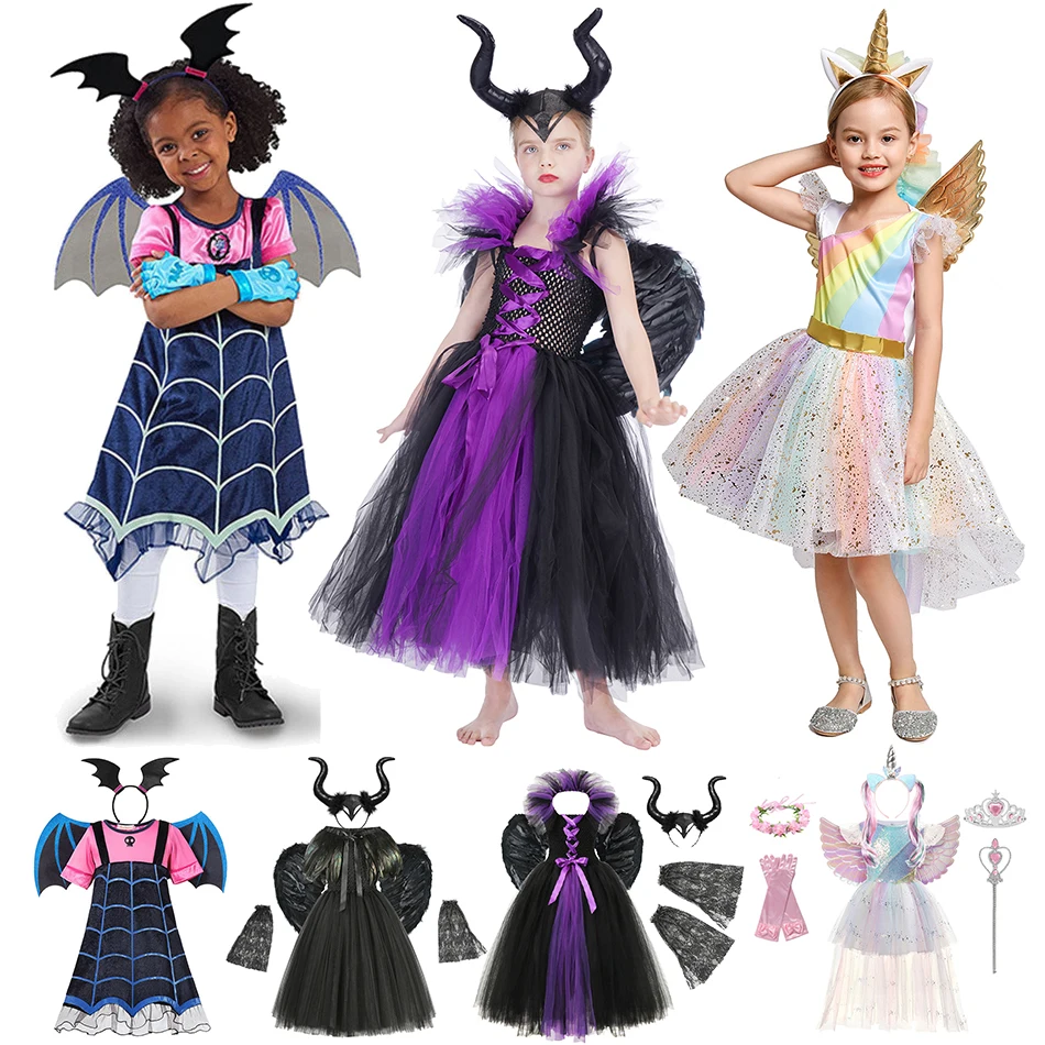 Платье-пачка злой королевы малефисент ведьма косплей костюм Дьявол Рог крыло для девочки вечеринки Хэллоуин Vampirina Единорог женская одежда