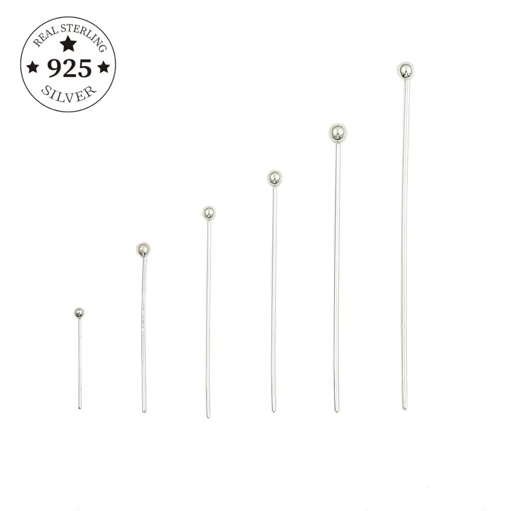 Булавки для глаз из серебра 925 пробы, 10 шт.лот, 15 20 25 30 40 50 мм