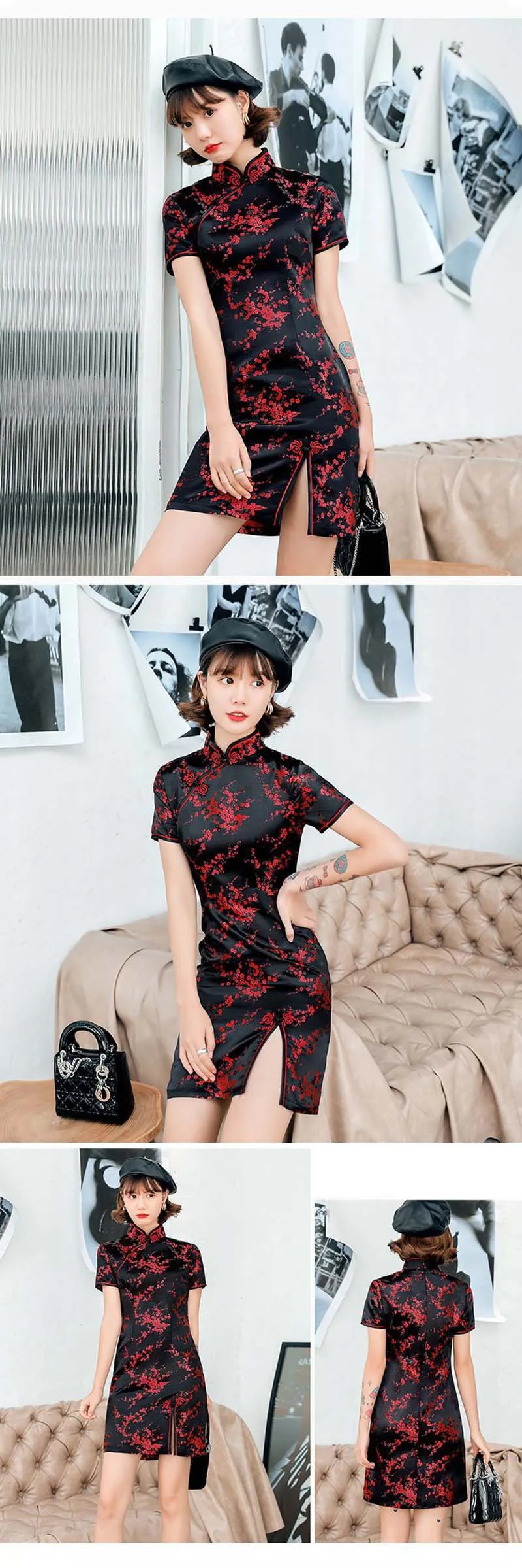 Новинка лета 2020, китайское национальное Короткое платье-Ципао, женское платье с баской, мини-платья с разрезом, Qipao
