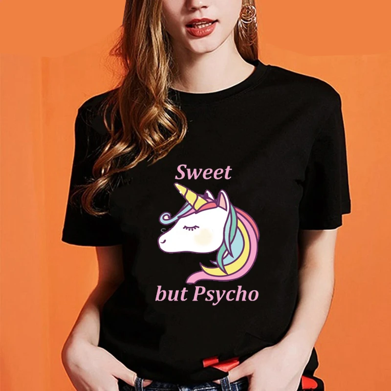 Футболка с единорогом, женская одежда, футболки Ulzzang, уличная одежда, Милая футболка с принтом, летняя футболка Harajuku, футболка с коротким рукавом