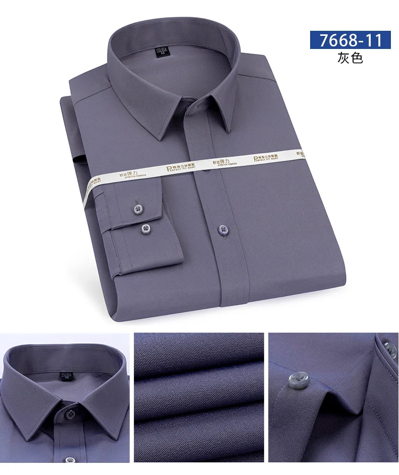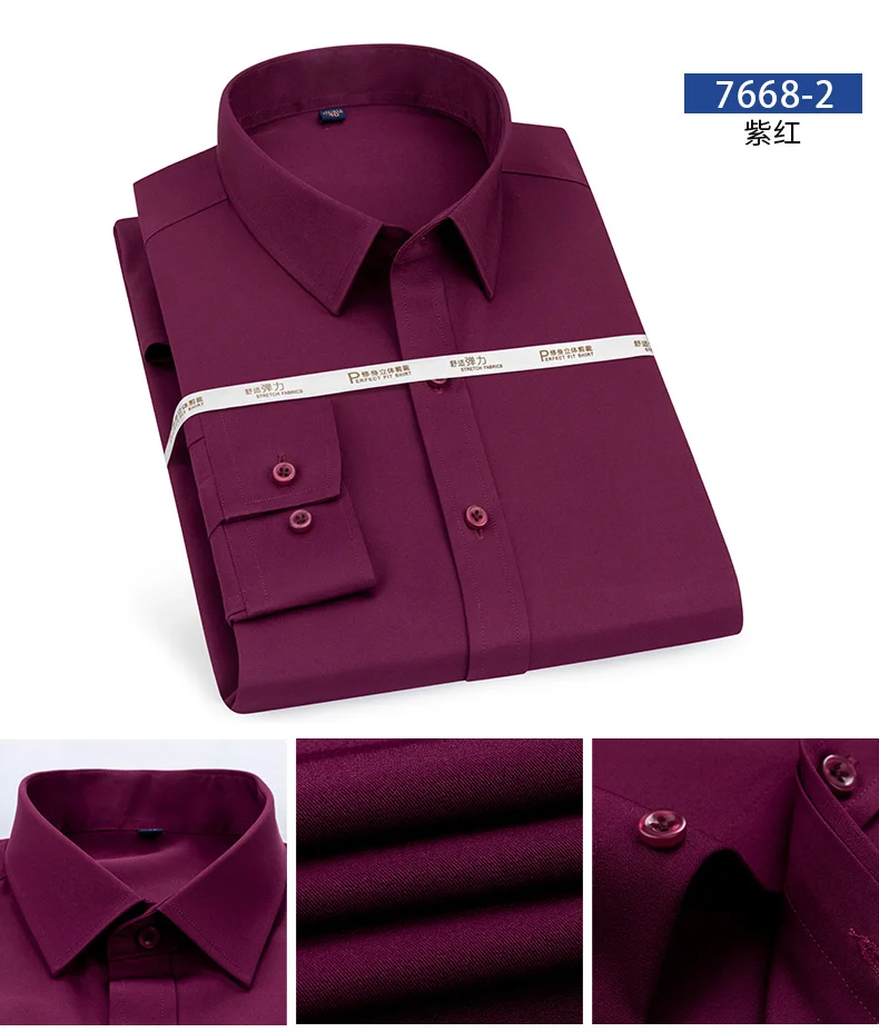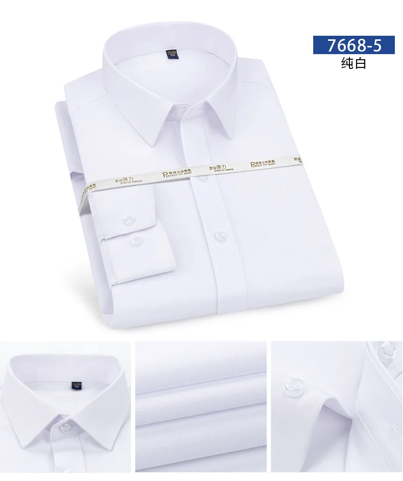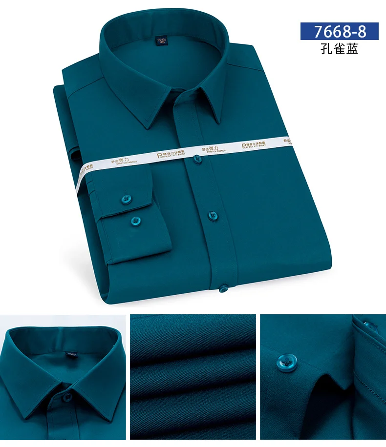 Рубашка мужская стрейчевая с длинным рукавом, мягкая блуза из спандекса, без нагрудного кармана, однотонная Повседневная Формальная одежда для работы, не требует особого ухода