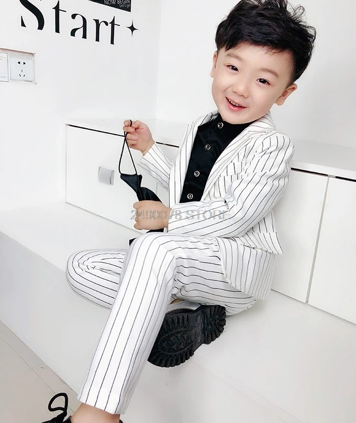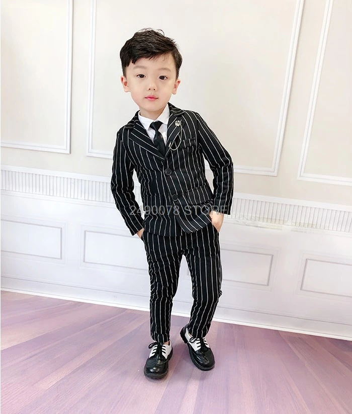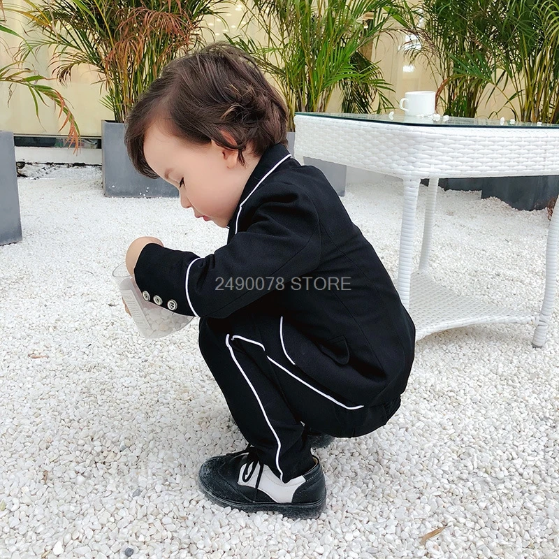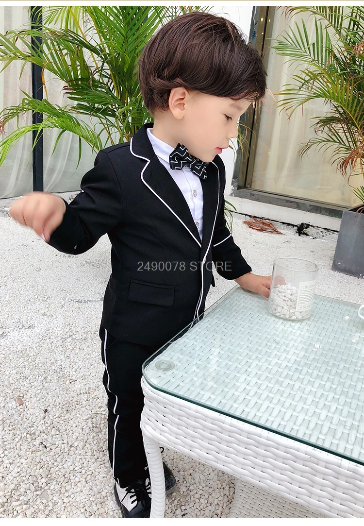 Строгий пиджак с цветочным принтом для мальчиков, брюки Свадебный костюм из 2 предметов комплект одежды для детей, детский смокинг для танцев вечерние представлений костюм ведущего