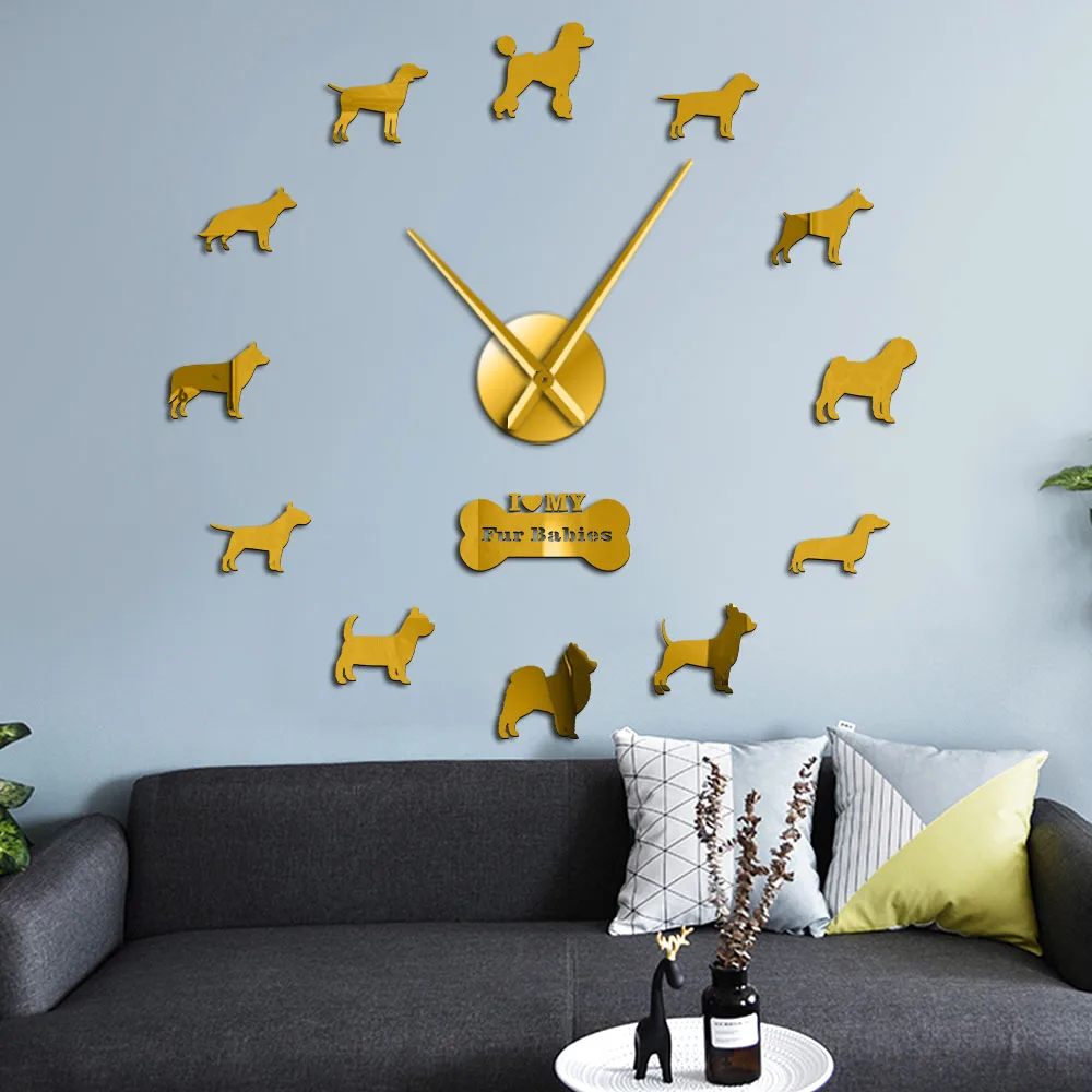 Настенные наклейки с изображением собаки, большие часы для домашнег...