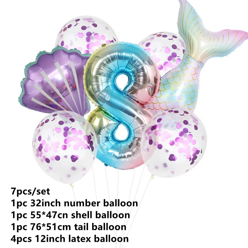 Вариант7 шт./компл. вечерние воздушные шары русалки1 шт. подставка для торта русалки24 шт Русалка торт топперы12 шт Русалка обертки для пирожных1 шт. шляпа русалки1 шт. воздушные шары с хвостом русалки4 шт подарочные сумки русалки1 шт. фонИ так далееБолее подробную информацию см. Ниже