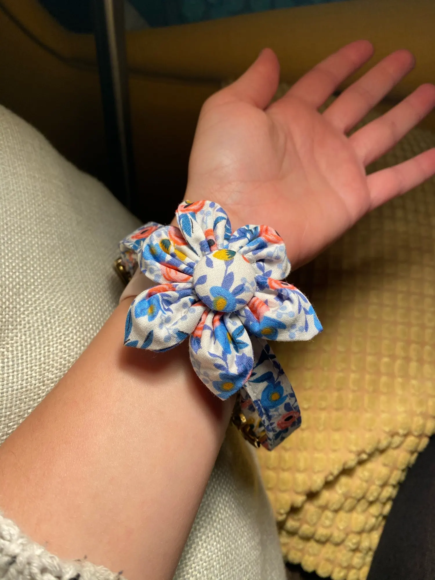 Это очень мило и действительно хорошее качество. Ткань плотная и многослойная, а цветок красиво встанет. Гравировка с моей личной информацией также является действительно приятным прикосновением, и она пришла быстро, чего я не ожидала во время яркого времени и всего остального.