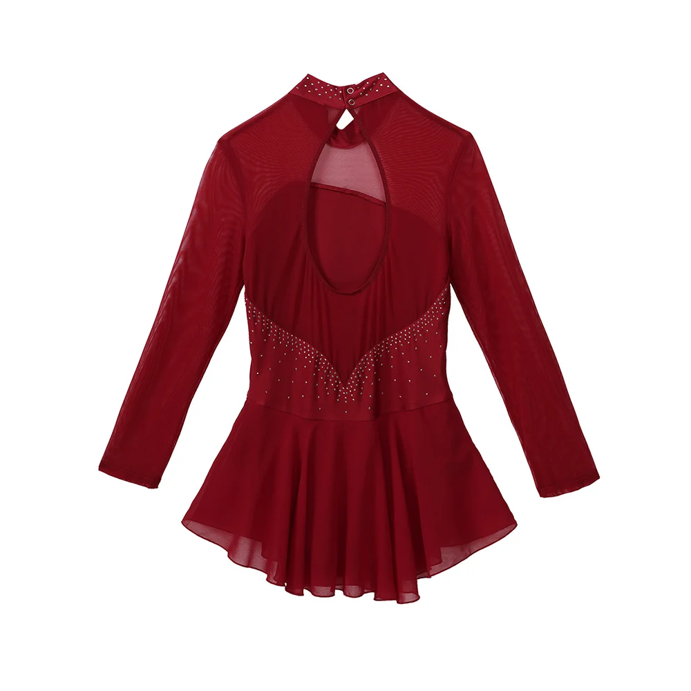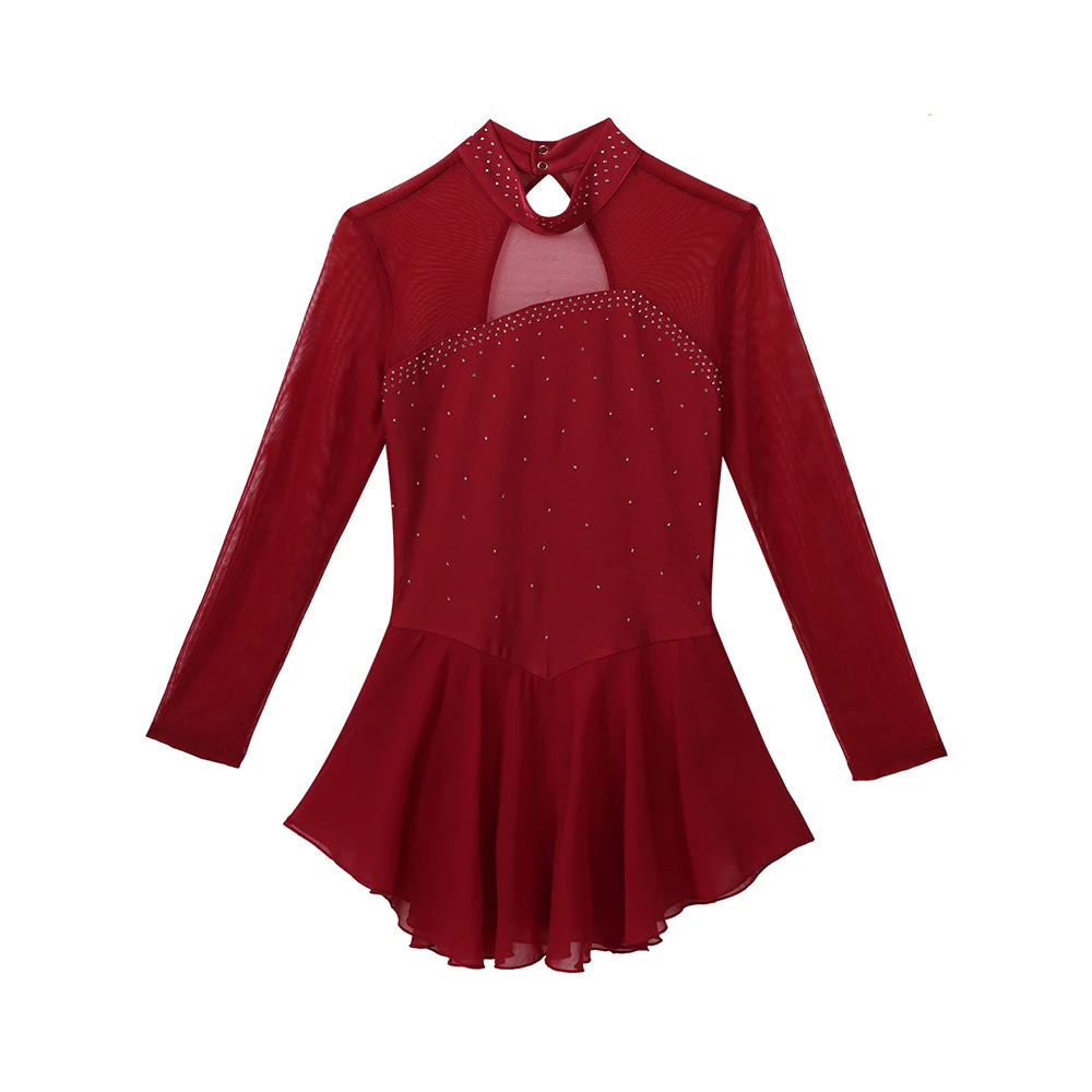 Женские блестящие, со стразами, Сетчатое платье с длинным рукавом для фигурного катания, балетная танцевальная одежда, гимнастический купальник, костюм для соревнований