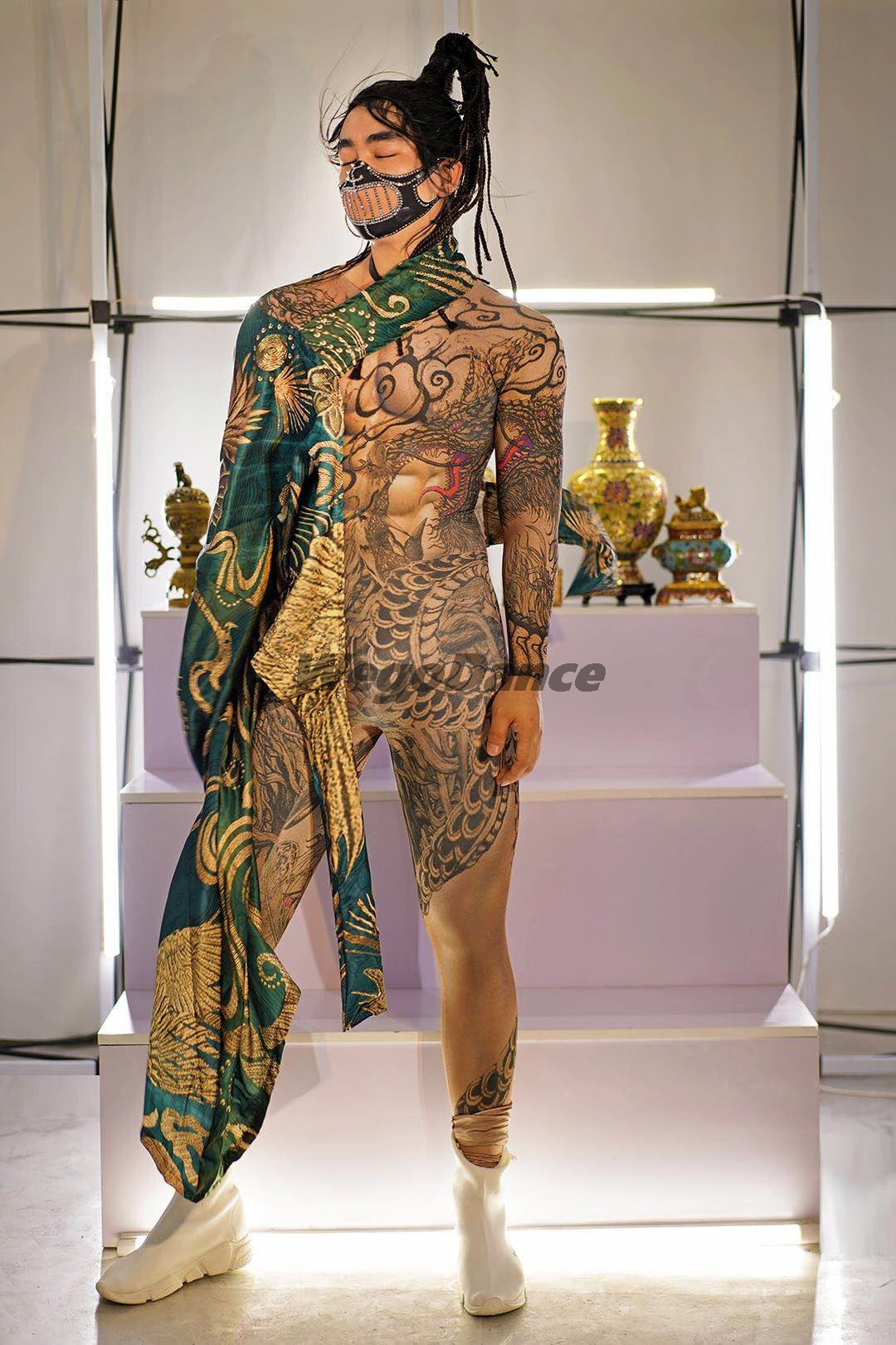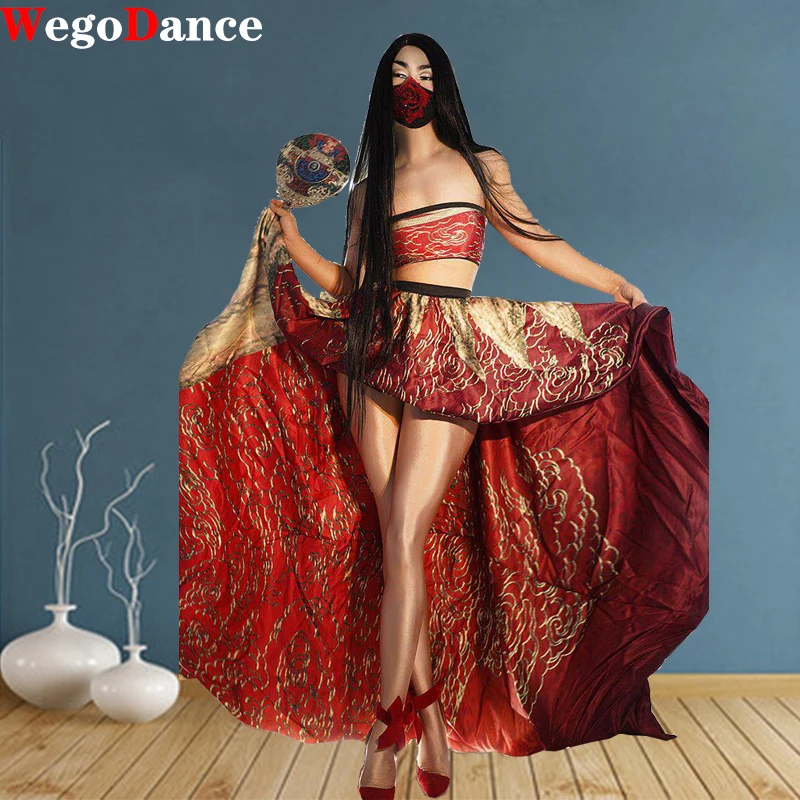 Новинка, модная модель, длинная юбка в китайском стиле, боди, костюм, костюм на день рождения, комбинезон для танцев, женщин, певиц, бар, мужчин, одежда для выпускного вечера
