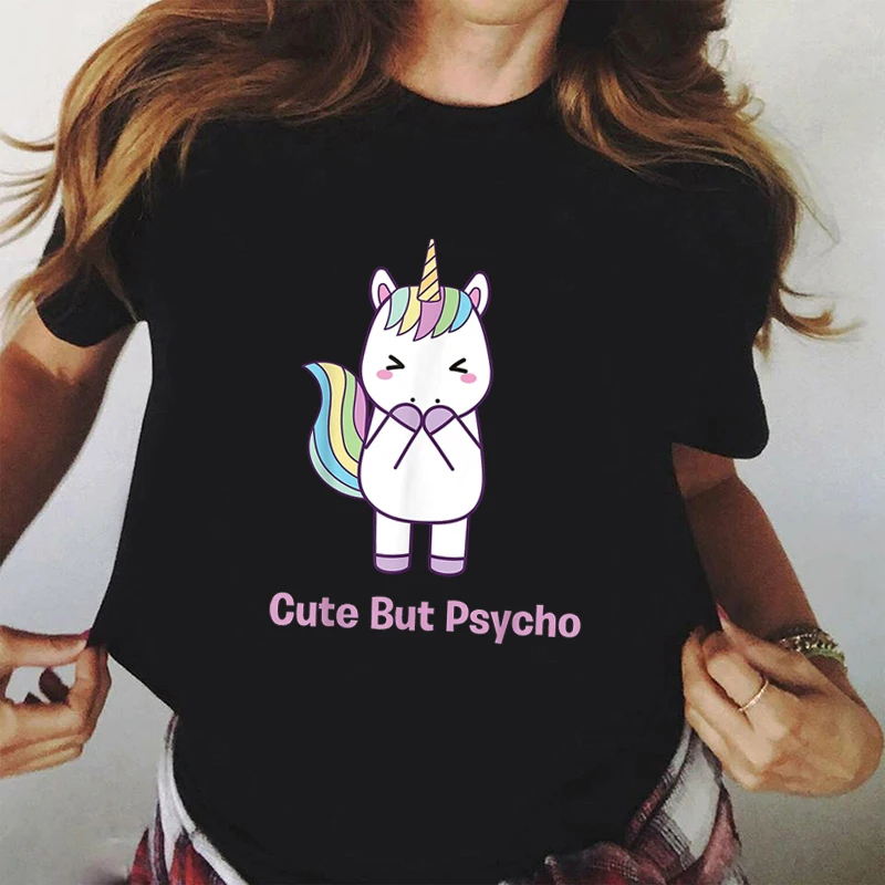 Женская одежда для футболок, футболки с коротким рукавом, милые, но Psycho, графический Рисунок, 90s, забавная футболка, черные летние топы, женские футболки