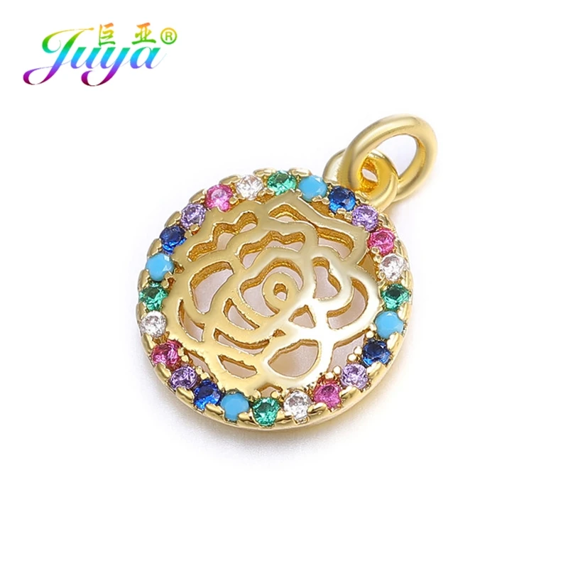 Juya DIY аксессуары поставки многоцветный кубический цирконий в виде ракушки Корона Звезда Луна Радуга сглаза роза цветок Шарм Подвески
