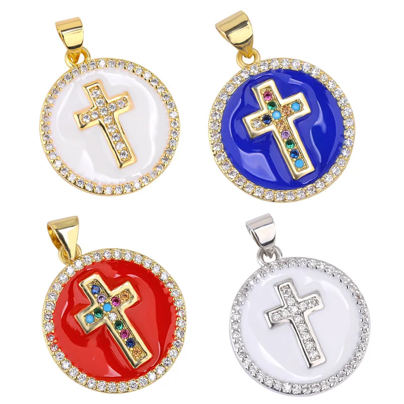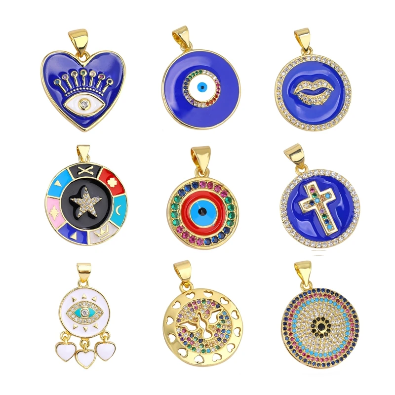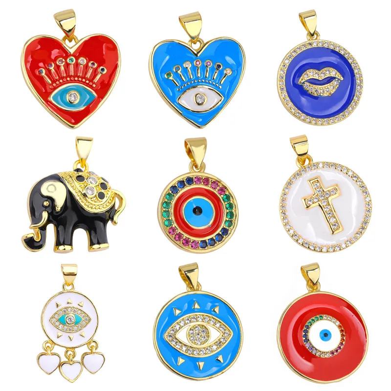 Эмалевые Подвески Juya ручной работы в форме сердца, Креста, звезды, греческого сглаза для изготовления Модный кулон, ювелирные изделия