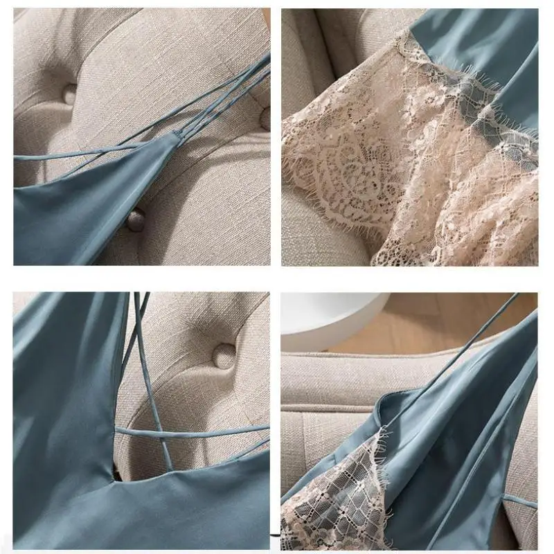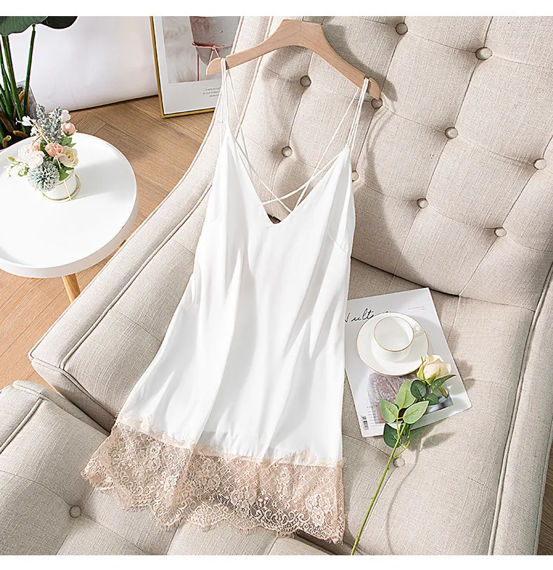 Ночная рубашка Женская атласная, на тонких бретелях, кружевная