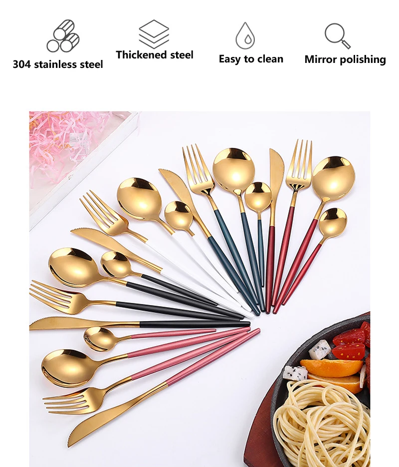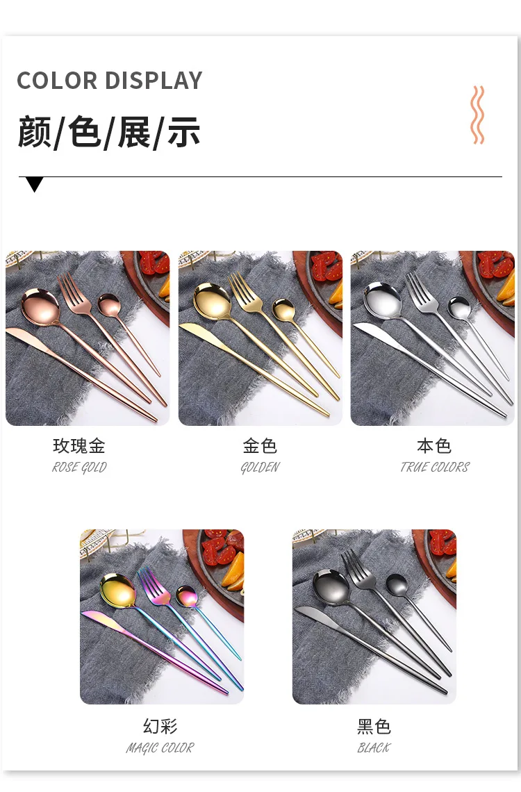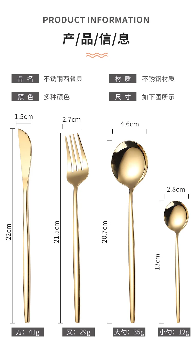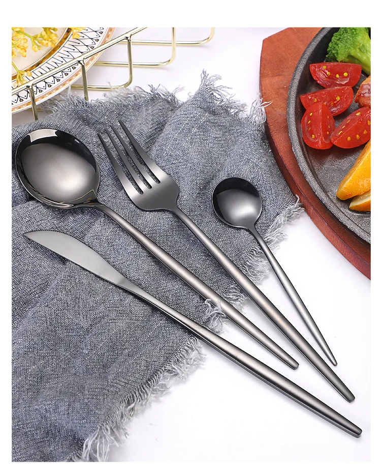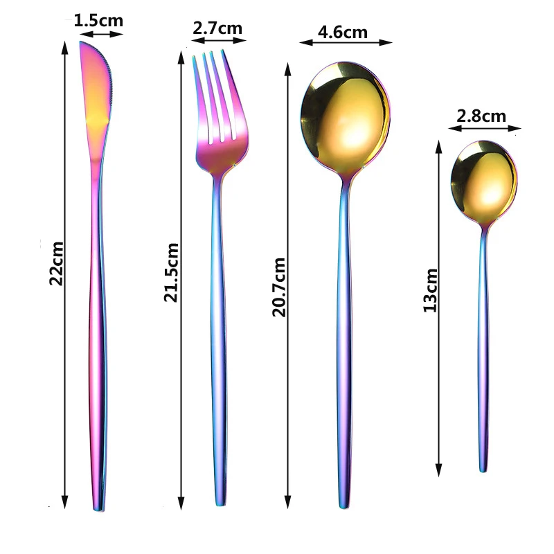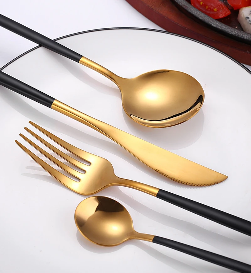 Набор посуды, ножвилкаложка из нержавеющей стали, цвет золотой, черный, серебристый, синий, кухонная посуда