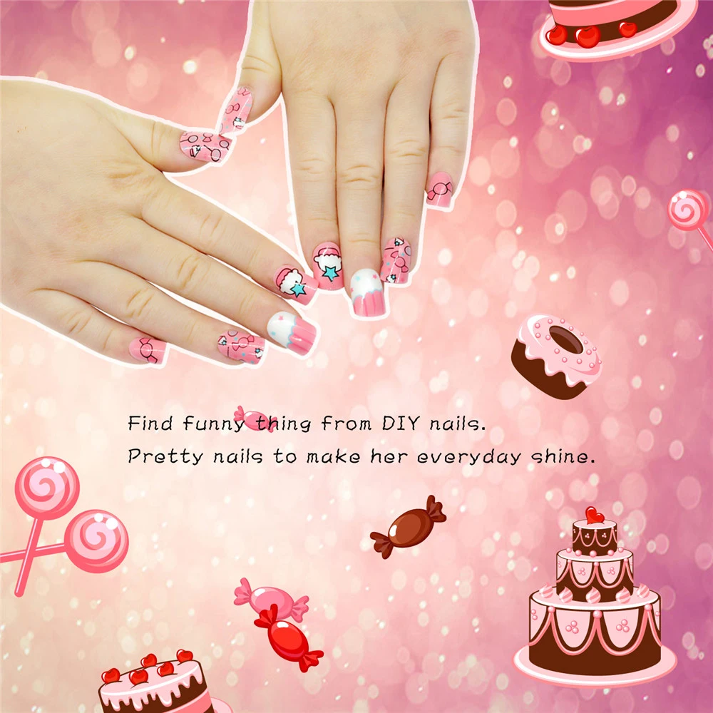 24 шт., накладные Типсы для детей, Мультяшные розовые накладные ногти для маленьких девочек, 17 дизайнов, маникюрные инструменты