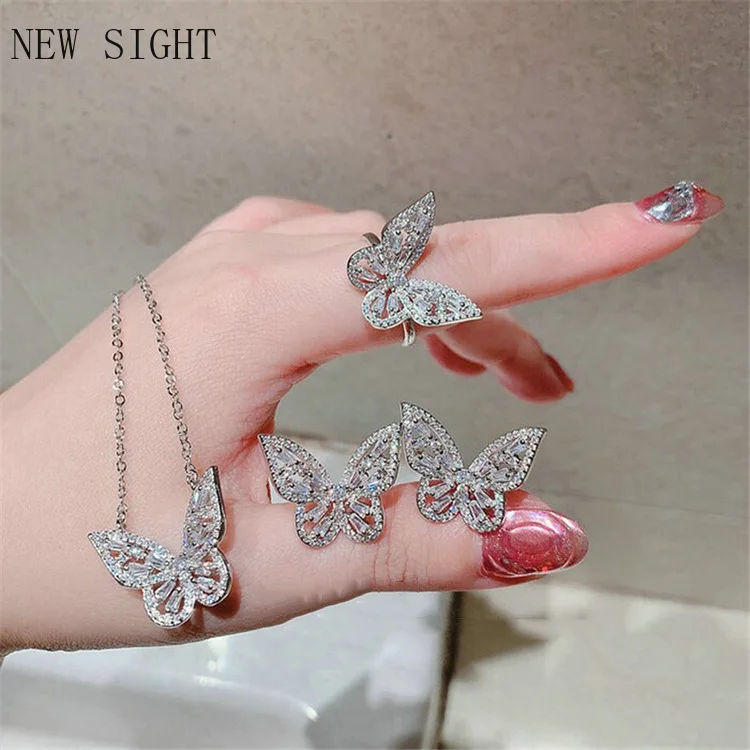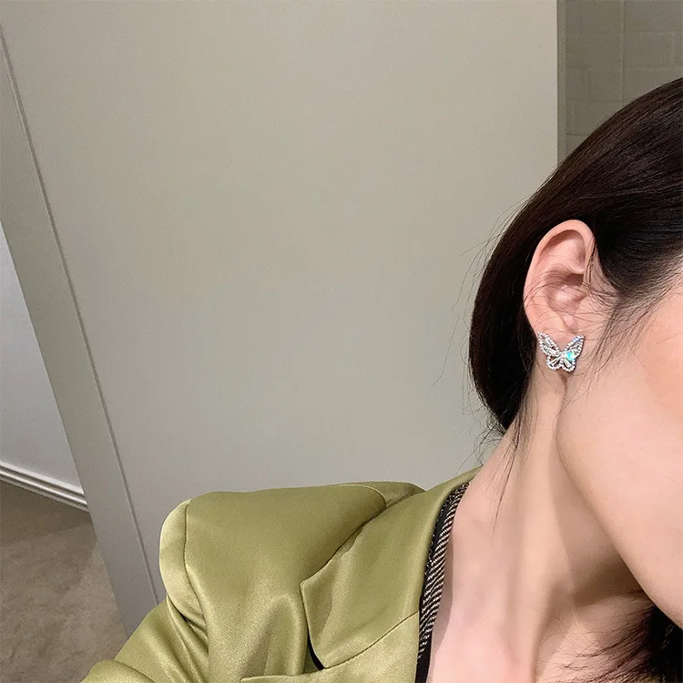 Женские серьги-гвоздики в виде бабочки, с кристаллами