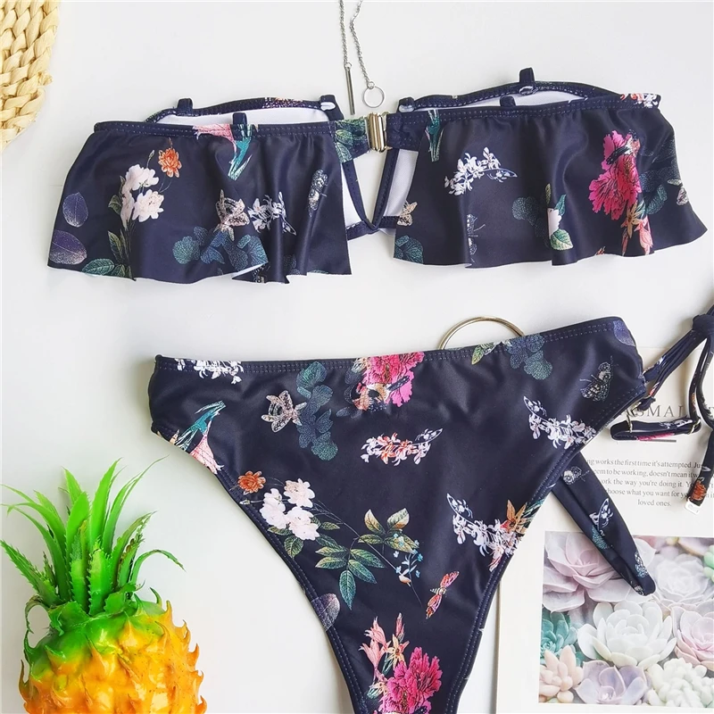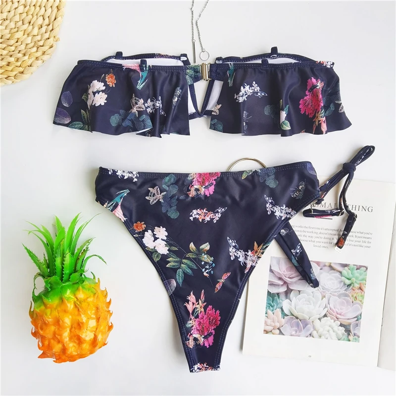 Бикини с цветочным принтом 2021, сексуальный женский бандажный купа...