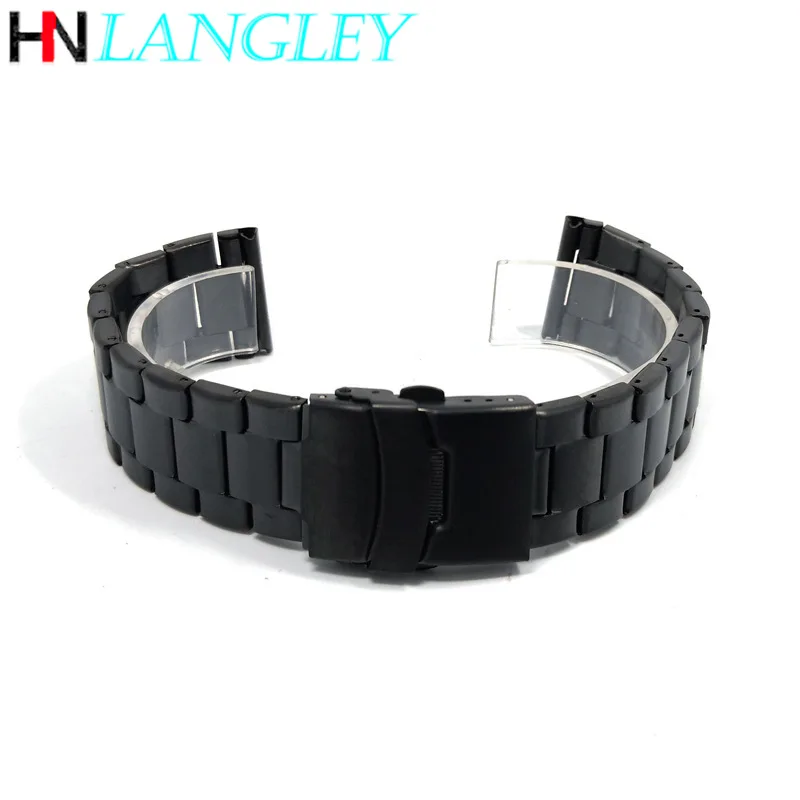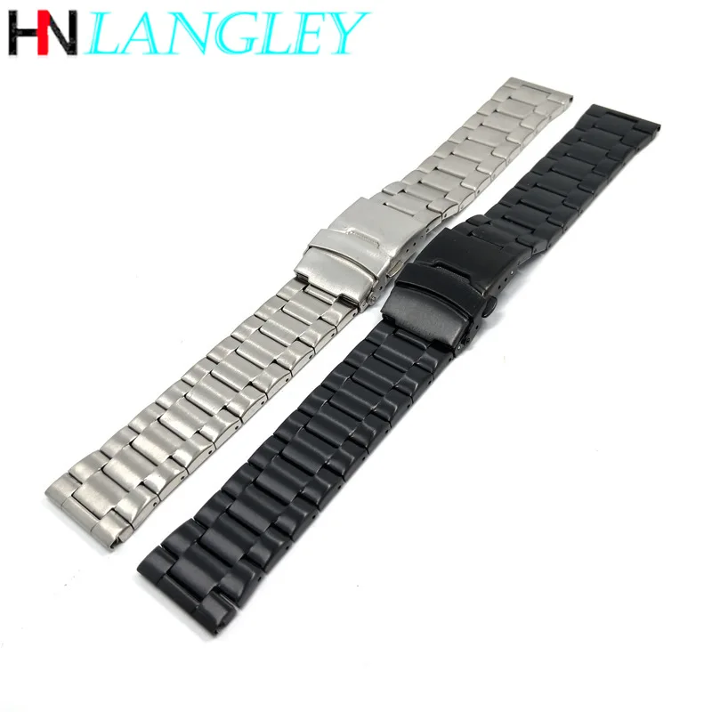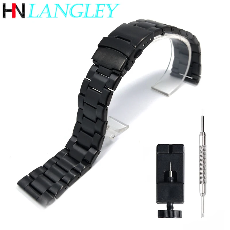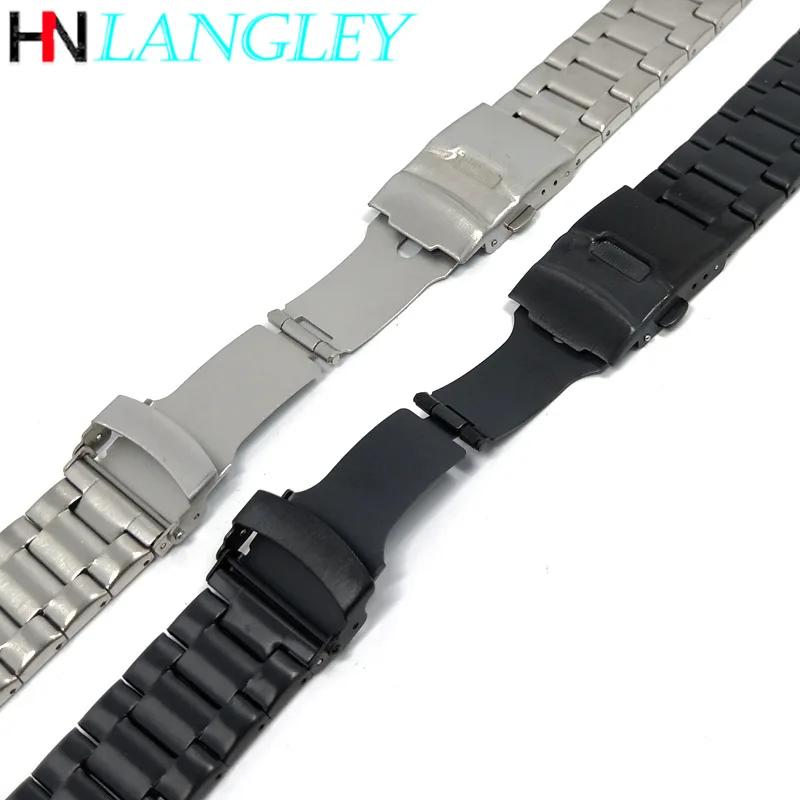 Ремешок для часов из нержавеющей стали, 20 мм, 22 мм, черный, серебристый, с двойной застежкой, металлический браслет