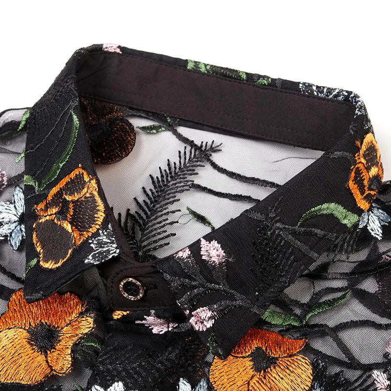 Кружевная рубашка с вышивкой для клувечерние, роскошная прозрачная ...