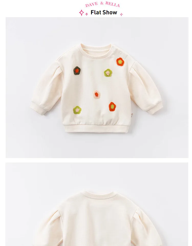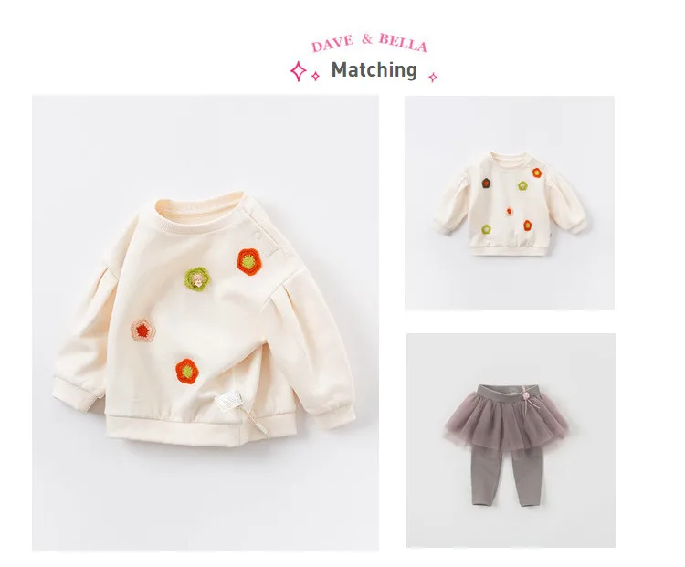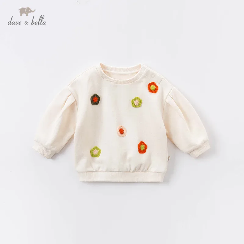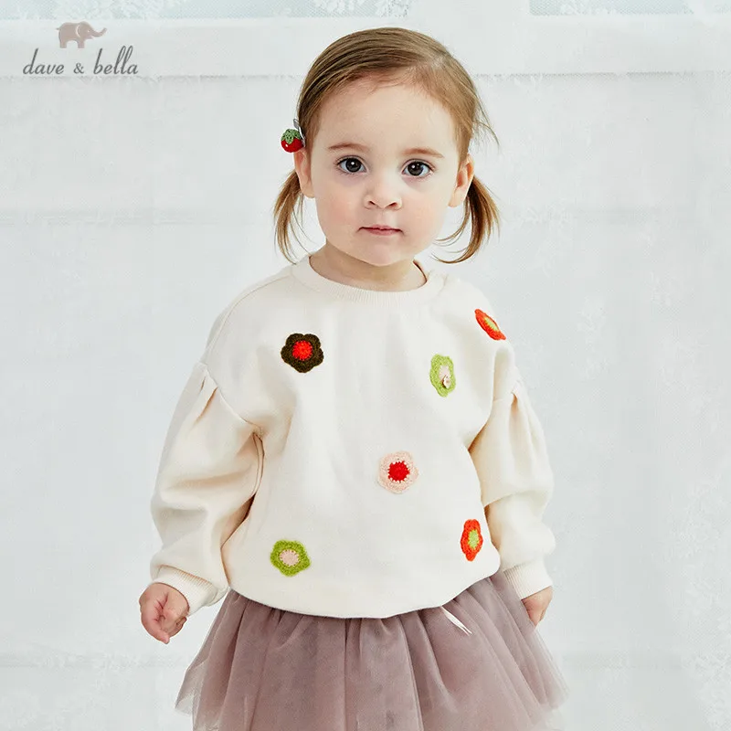 DB14928 dave bellaОсенняя футболка с цветочной аппликацией для маленьких девочек; Детские топы для девочек; Милые модные детские футболки на пуговицах