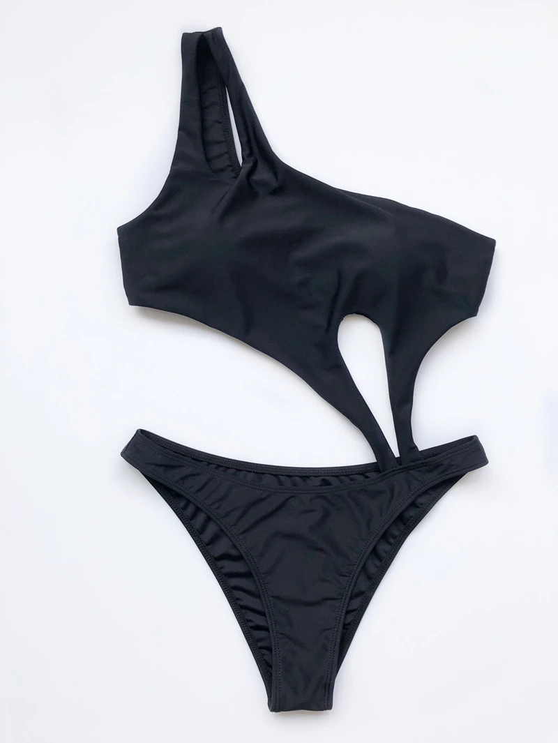 Женский классический слитный купальник на одно плечо, однотонный ку...