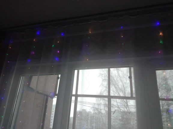 очень хорошо смотрится в темноте. меняется яркость. несколько режимов. можно повесить не только на шторы , но и на леску