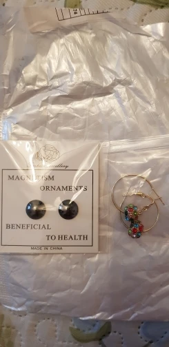 Они очень красивые. Я выбрал разноцветную золотую модель. Прибыл в мой дом хорошо упакован. Я очень рад этому. Товар точно такой же, как в описании. Они легкие, удобные и легко надеваются или снимаются. Что касается свойств потери веса магнитной акупунктуры уха, я надеюсь, что видимый результат через месяц, и вернусь, чтобы сделать свои вывод. Продавец был идеален, слушать. Просто для красоты Изделия, я тепло рекомендую этот товар.