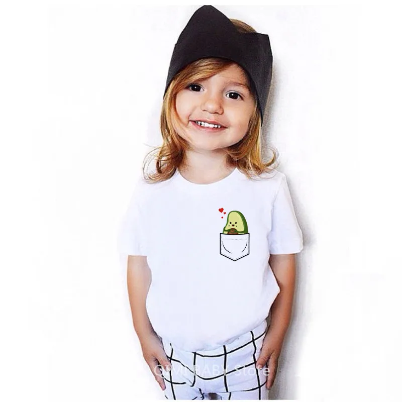 Новинка 2020, корейские милые футболки для маленьких мальчиков с авокадо, футболки для малышей с милым мультяшным рисунком, летние маленькие свежие Топы в стиле Харадзюку для девочек, Tumblr