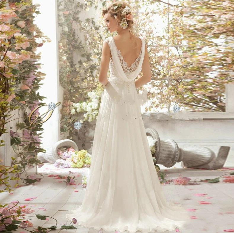 Пляжные свадебные платья, шифоновые кружевные свадебное платье с аппликацией, белыеLvory, с открытой спиной, Vestido De Noiva, свадебные платья для женщин
