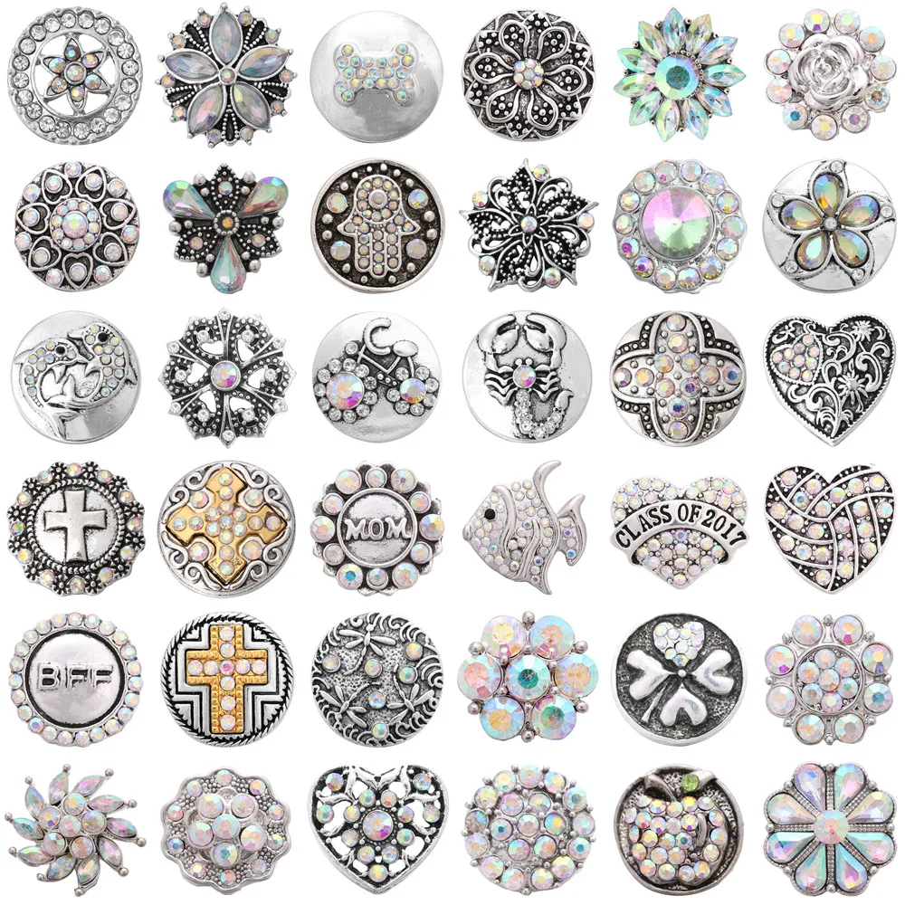 5 шт.лот Новинка 39 стилей защелки ювелирные изделия 18 мм металлические стразы кнопки ювелирные изделия AB красочные кнопки подходят для браслета DIY шармы