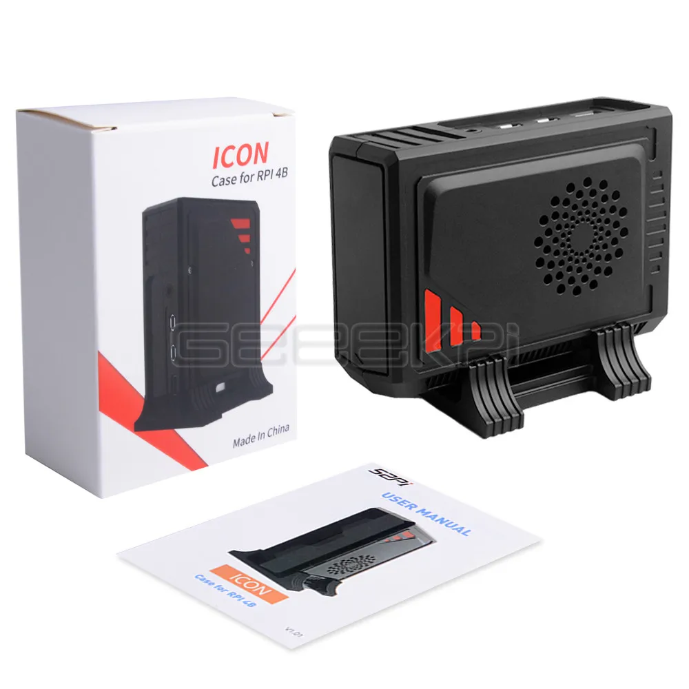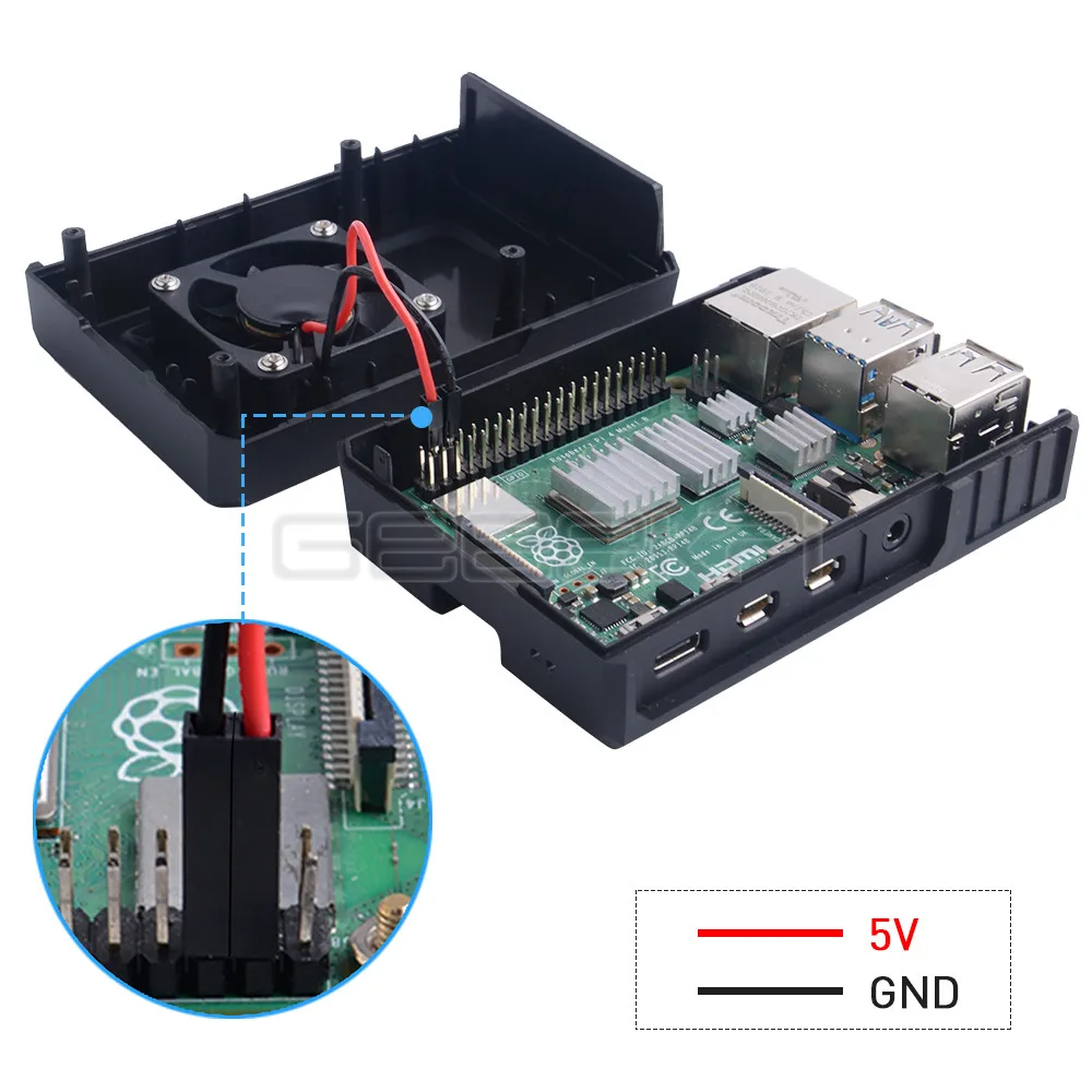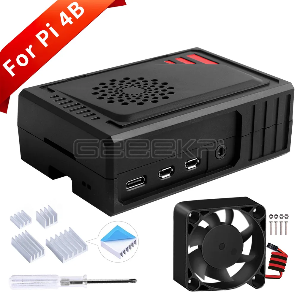 Чехол GeeekPi для Raspberry Pi 4B, АБС-пластик, со светодиодным вентилятором 4010 и алюминиевым радиатором