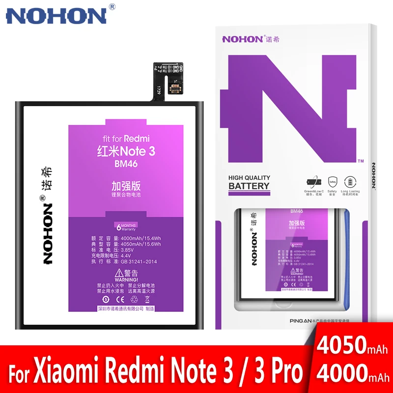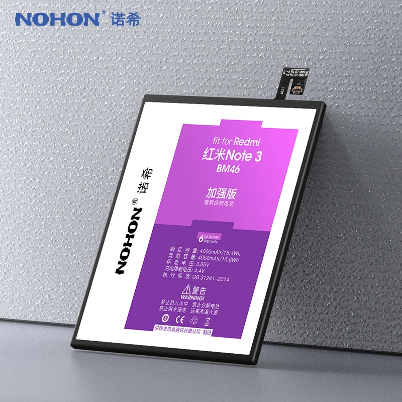 Оригинальный аккумулятор NOHON для Xiaomi Redmi Note 3 BM46 Mi Hongmi Note3 Pro 4000 мА ч