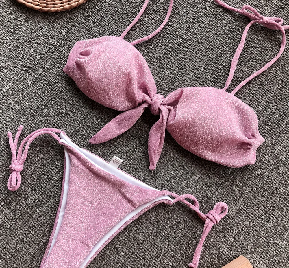 Сексуальный женский комплект бикини с блестками, летний бандажный купальник, купальный костюм, женская пляжная одежда с пуш-апом, бразильское бикини