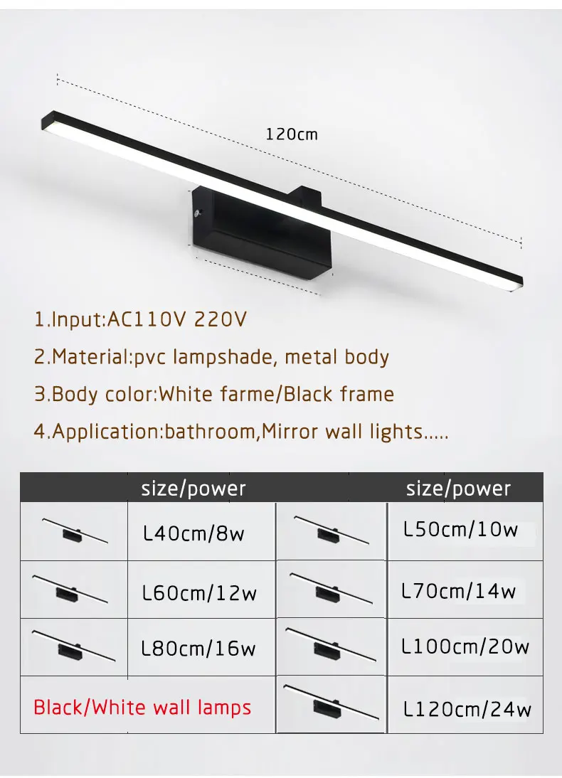 Новинка, модная светодиодная настенная лампа 120 см для прикроватного столика, ванной комнаты, зеркала, передние настенные светильники, современная светодиодная настенная лампа, черно-белые светильники 110 220 В