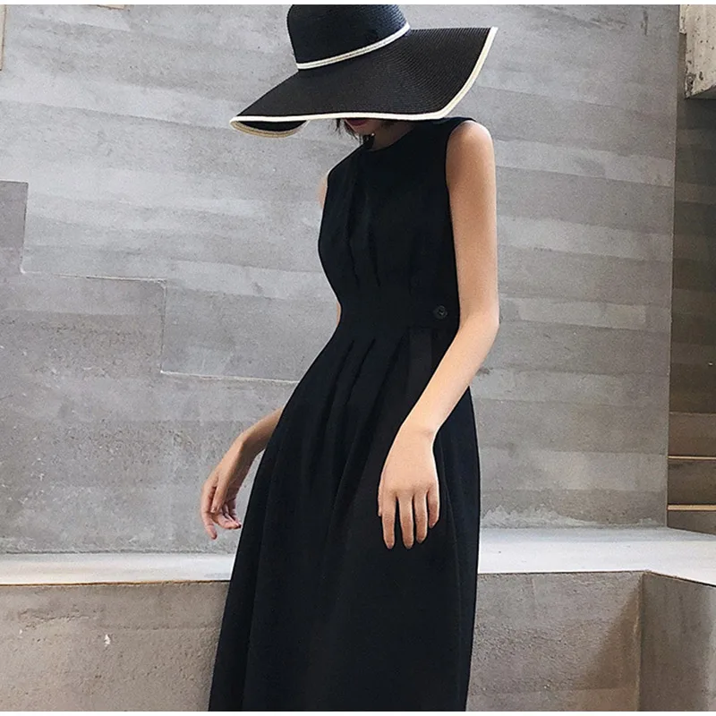 Летнее платье миди без рукавов с карманами, плиссированная туника с пуговицами, трапециевидные женские платья, новинка 2021, повседневный женский сарафан на бретелях