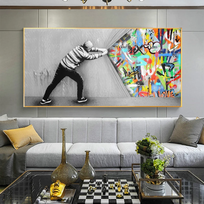 Уличная Картина граффити на холсте, плакаты и принты за занавеской, Настенная картина для гостиной, Декор для дома
