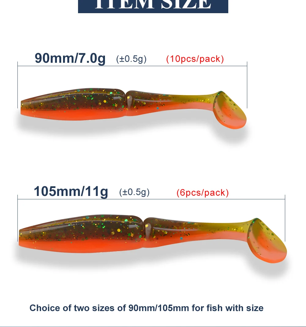 Приманка рыболовная силиконовая, 90 мм, 105 мм, мягкая